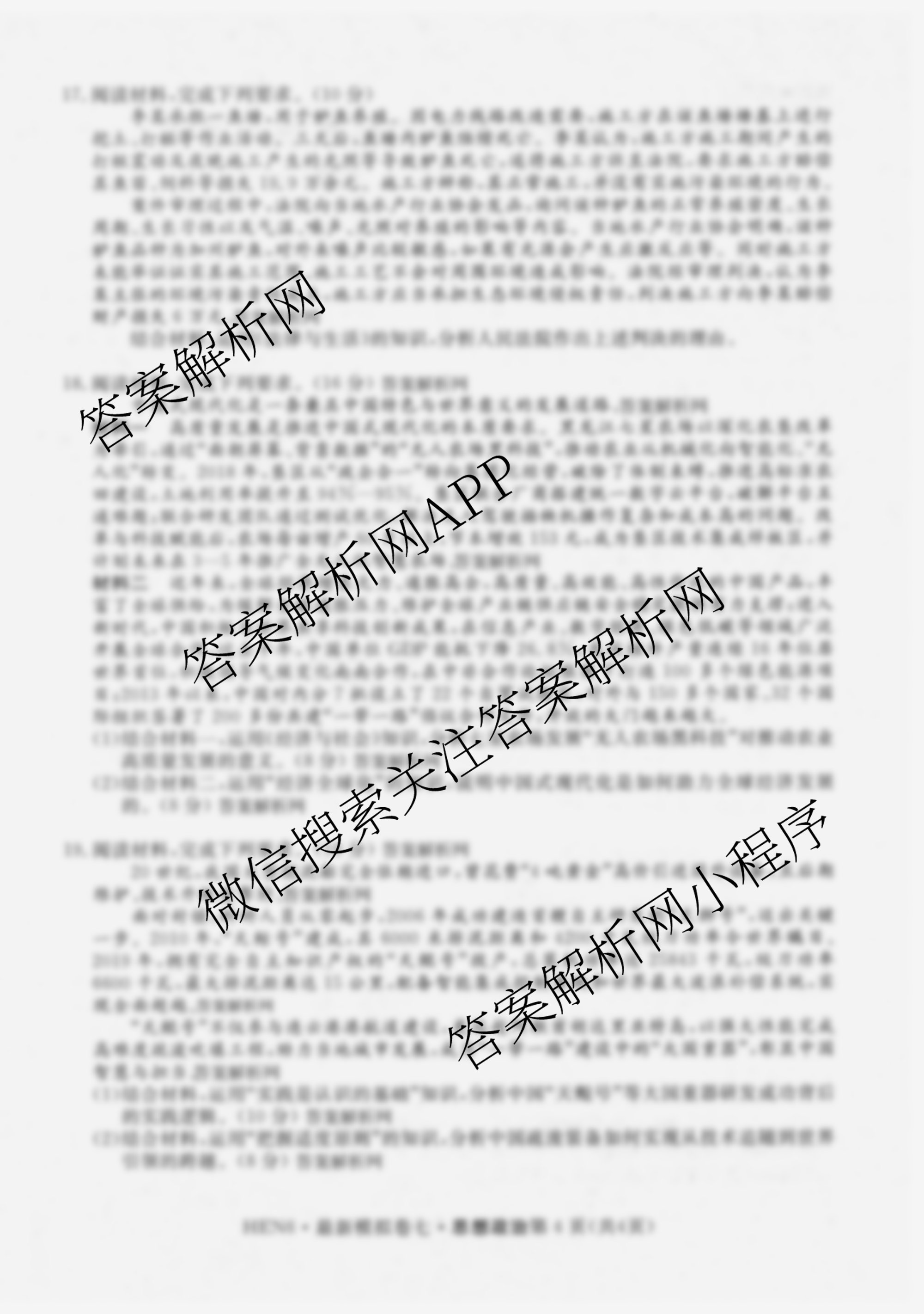 - 2026年普通高等学校招生统一考试·最新模拟卷(七)7政治(HEN6)答案