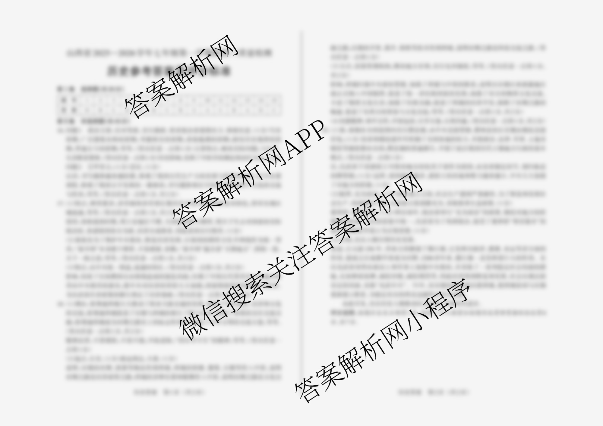 - 七年级(晋文源)山西省2025-2026学年第一学期阶段三质量检测历史答案