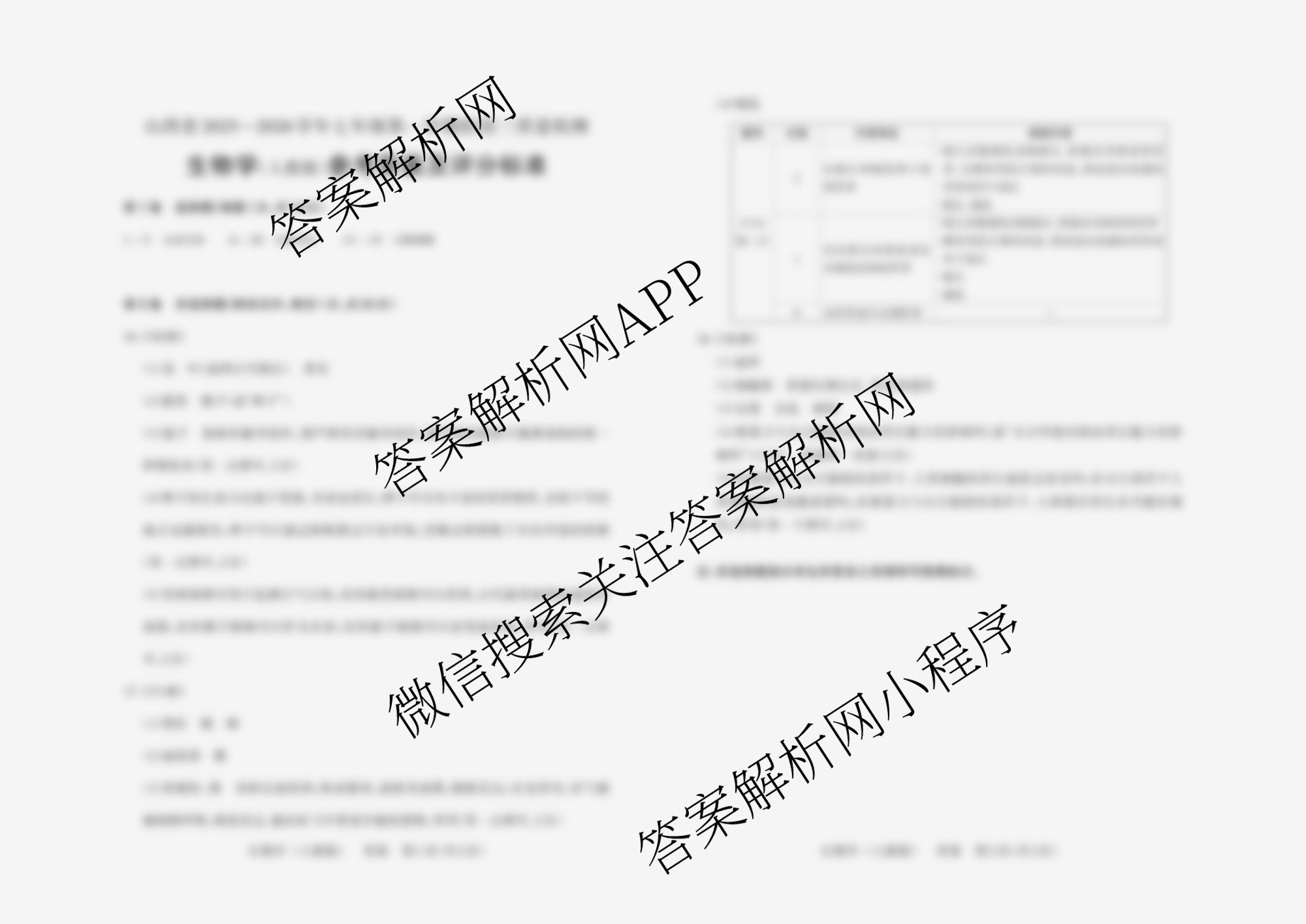 - (晋文源)山西省2025~2026学年(七年级)第一学期阶段三质量检测生物(人教版)答案