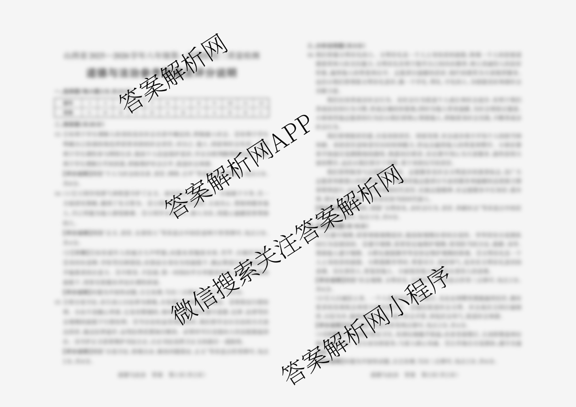 - (八年级)晋文源山西省2025~2026学年第一学期阶段三质量检测道德与法治答案