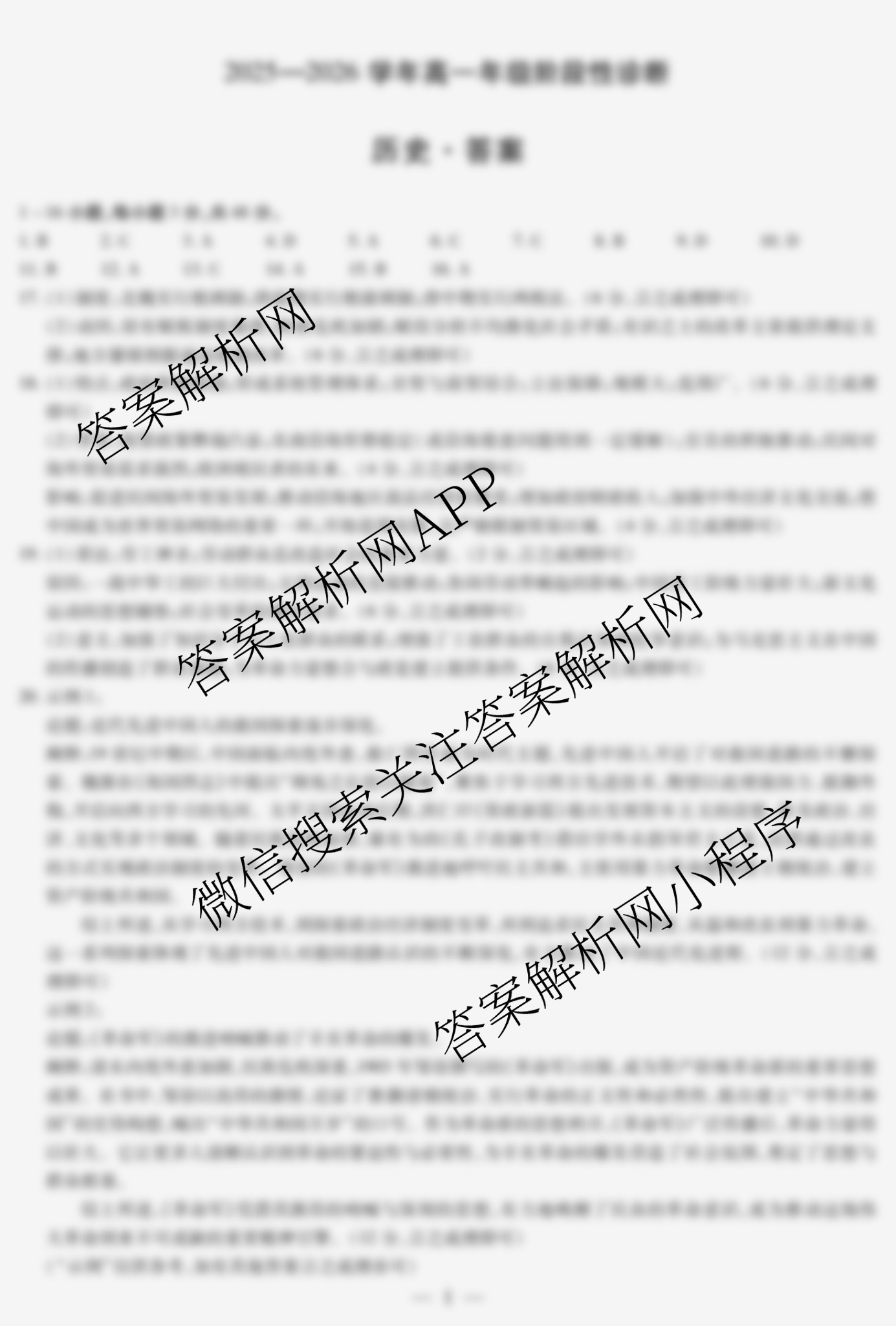 - 2025-2026高一(天一大联考)河南省学年年级阶段性诊断(12.16)历史答案