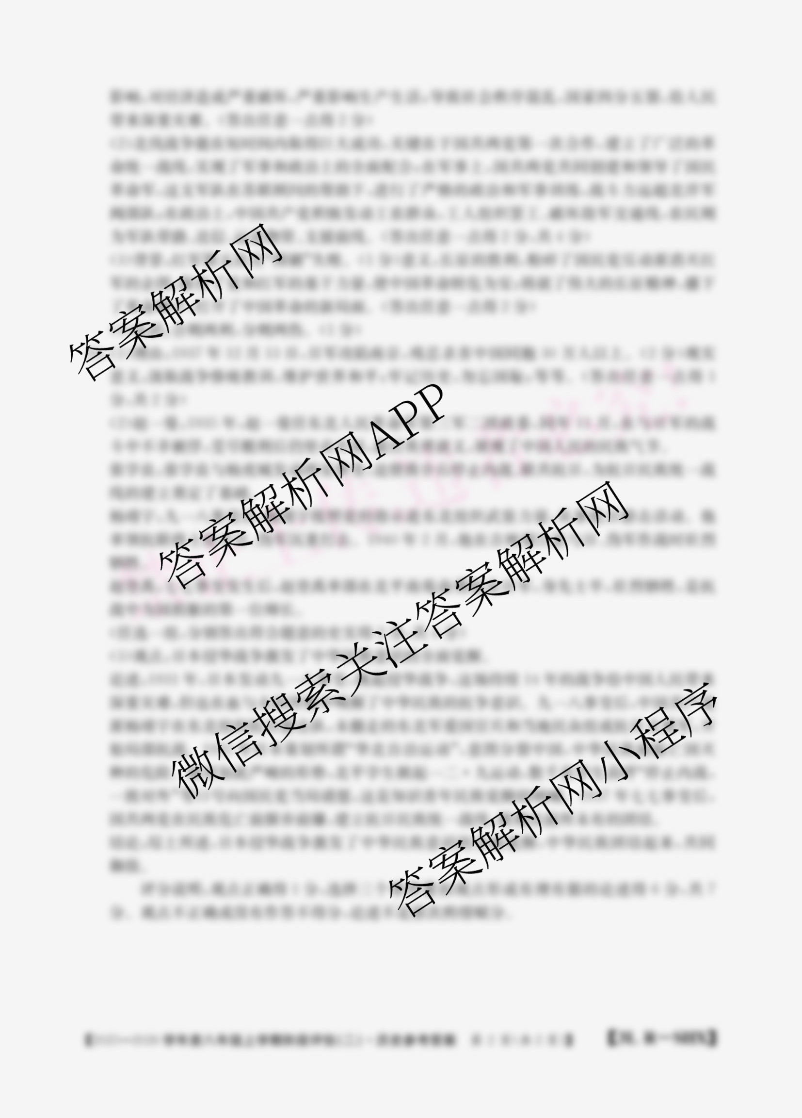 - 2025~2026山西省学年度(八年级)上学期阶段评估(二)[3L-SHX]历史(R)答案