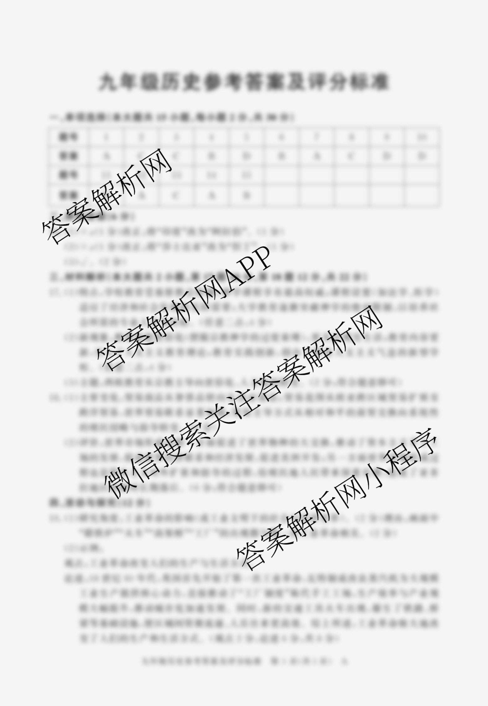 - 2025~2026九年级安徽省学年上学期教学质量调研(三)A卷(12.18-19)历史答案