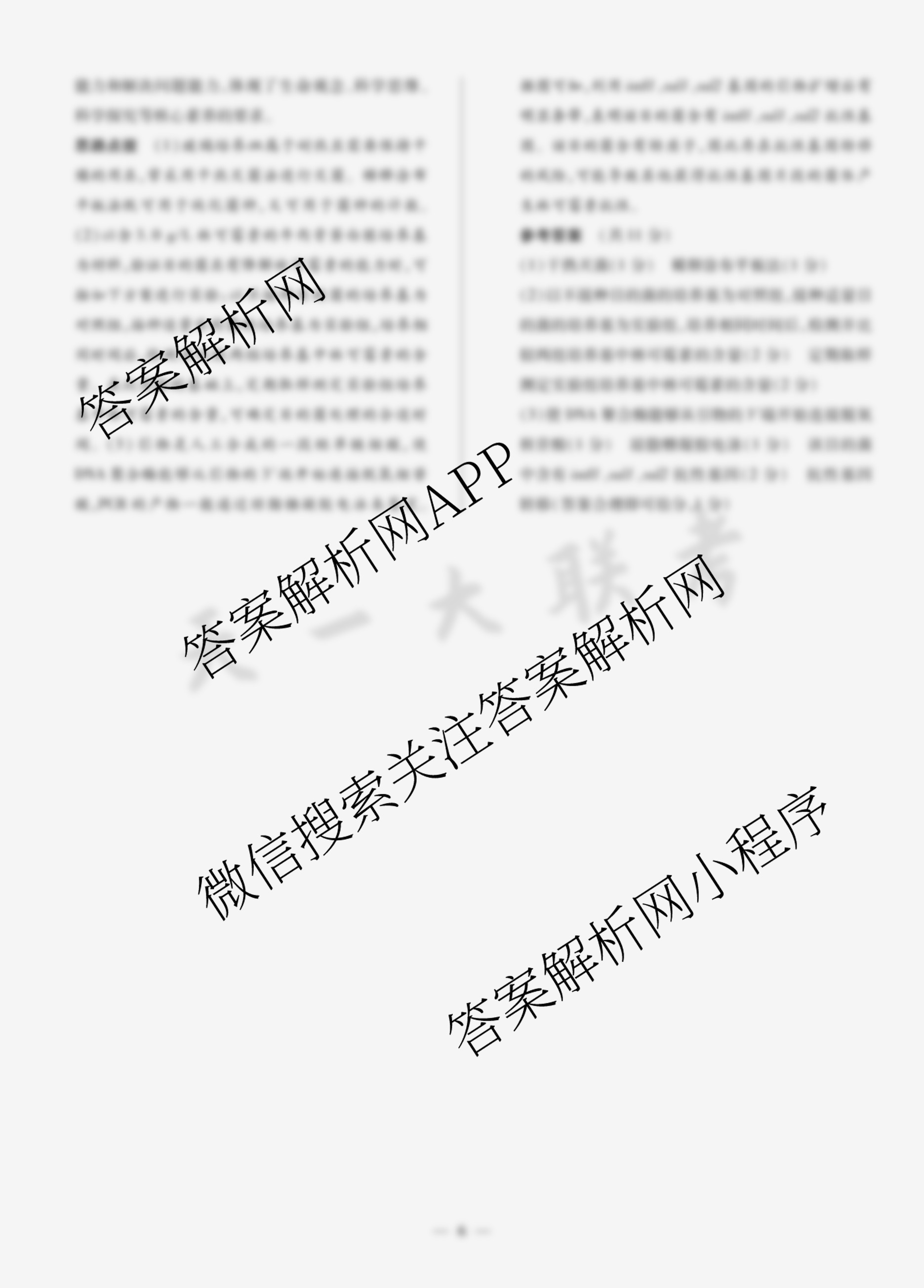 - (高三)[天一大联考]2026届高考全真模拟卷(一)1生物(陕西专版)答案