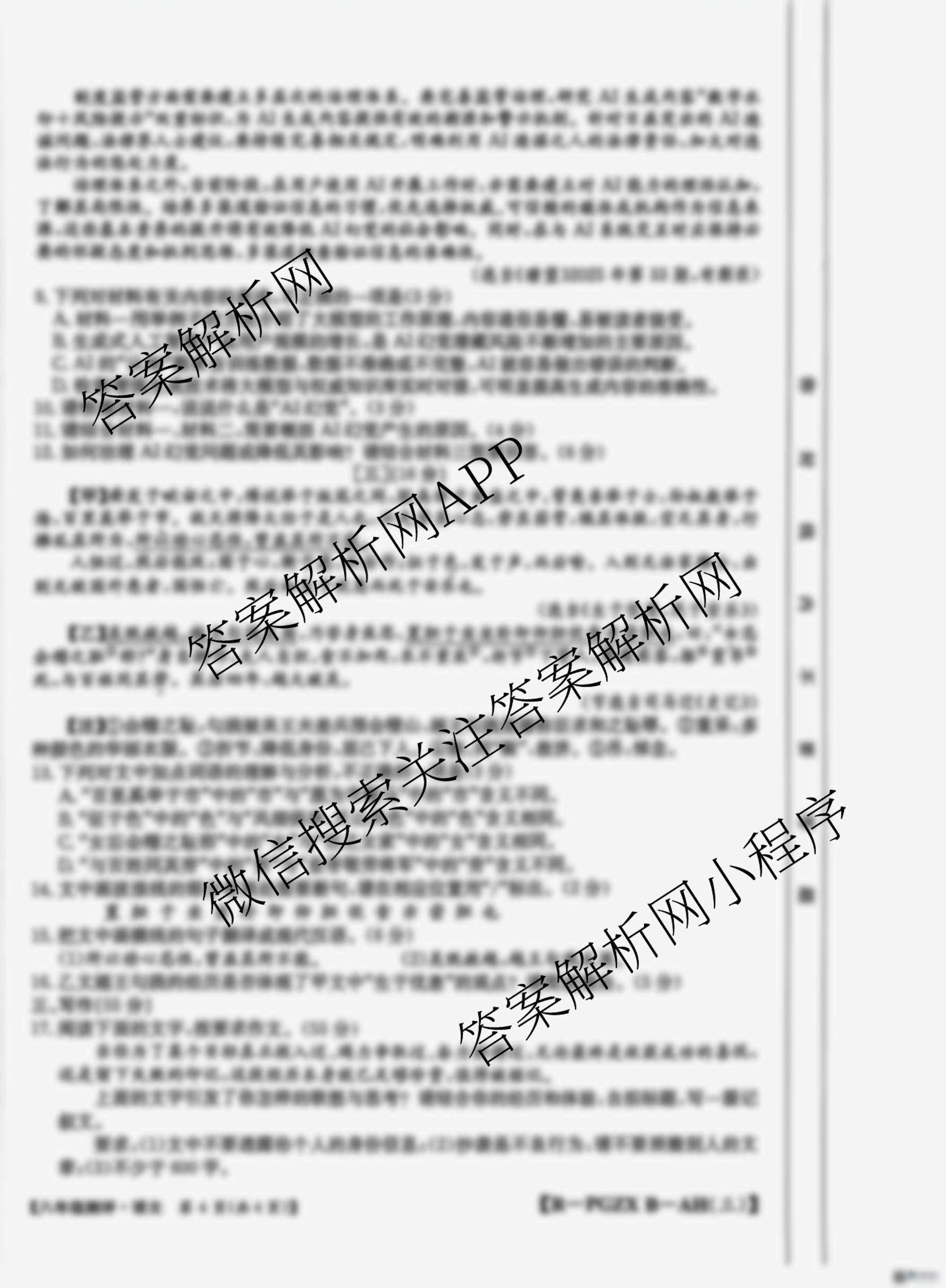 - 2025-2026(八年级)安徽省学年度测评[PGZX·B-AH(三)]语文(R)试题