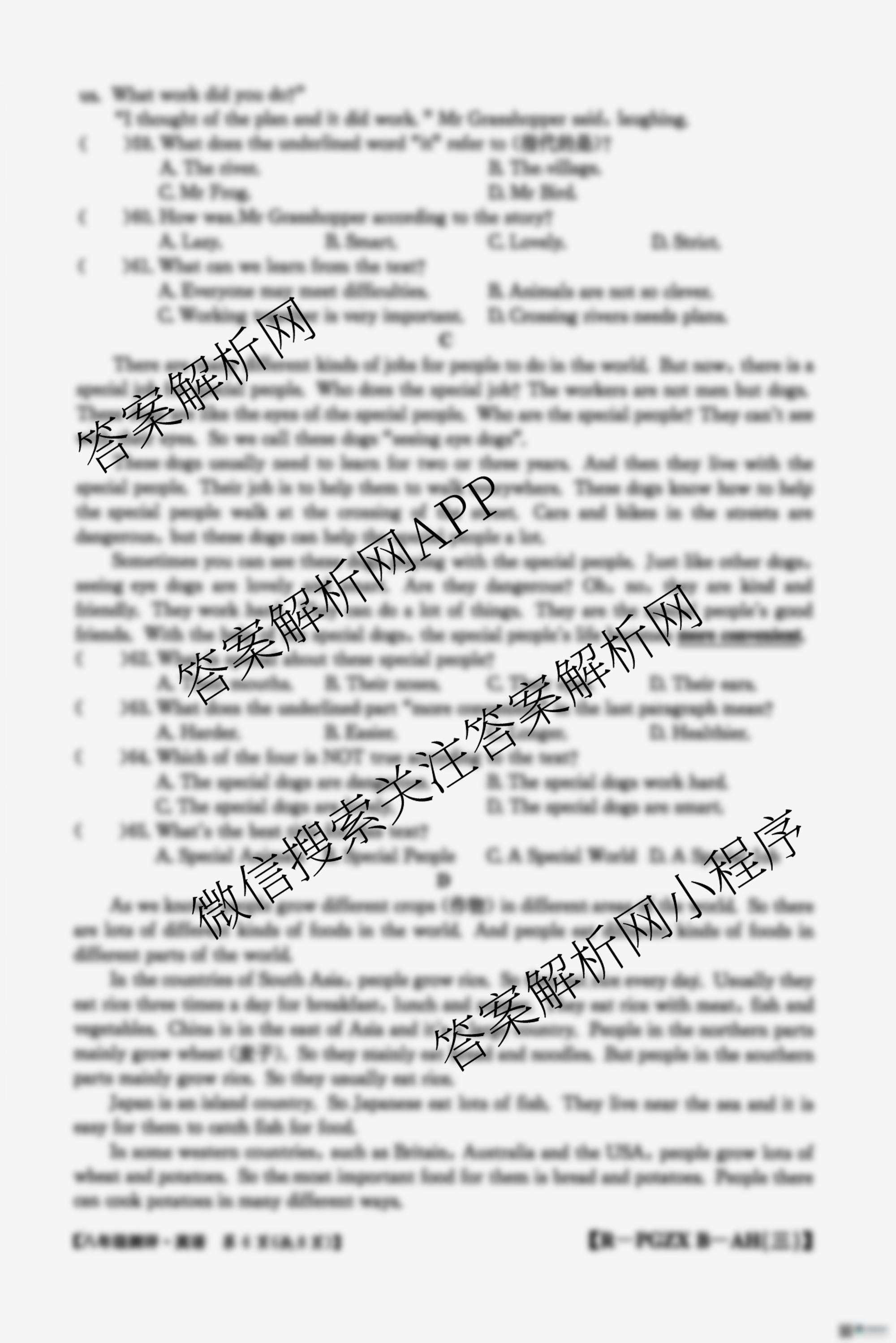- [八年级]安徽省2025-2026学年度测评[PGZXB-AH(三)]英语(R)答案