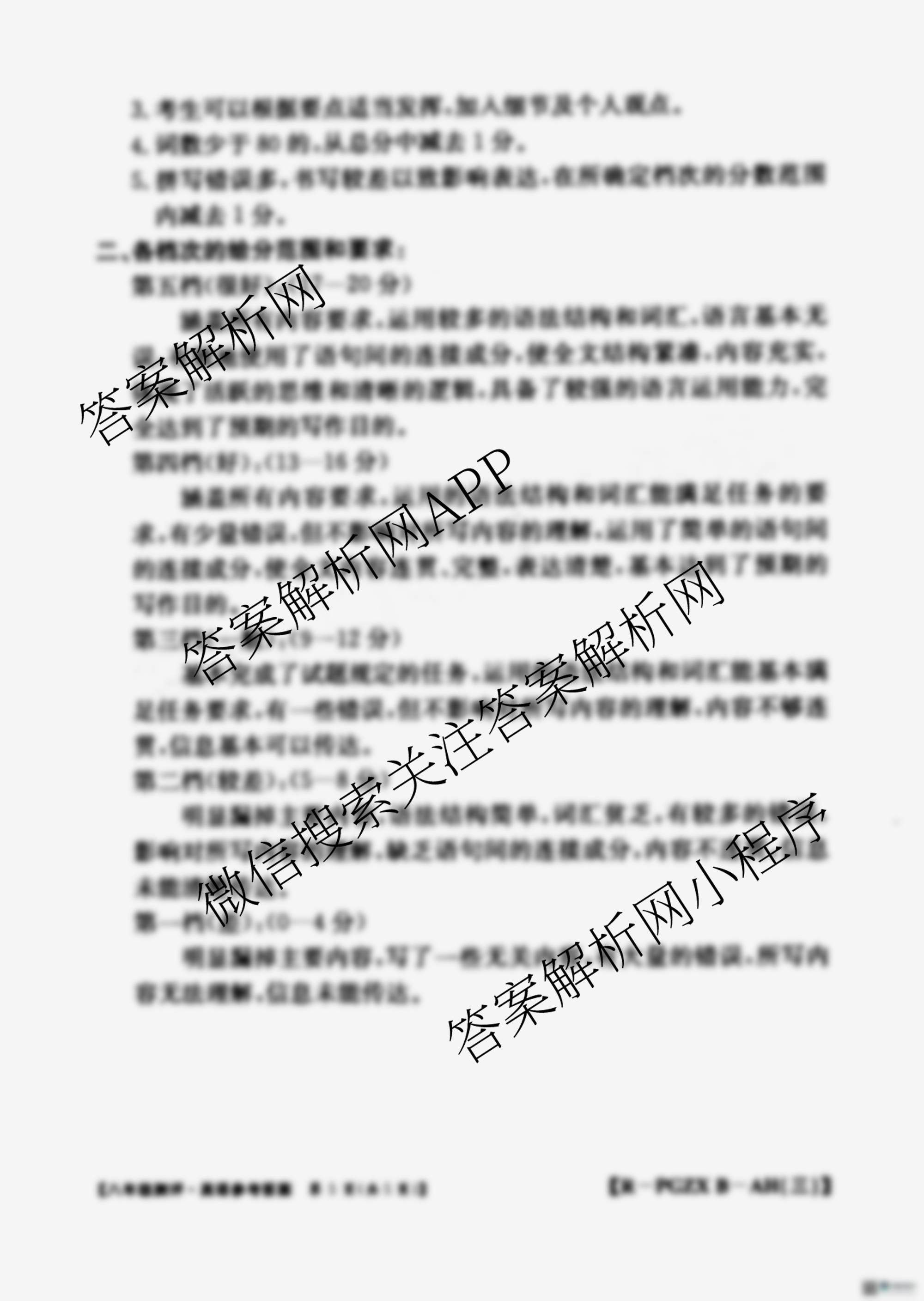 - 2025-2026[八年级]安徽省学年度测评[PGZX·B-AH(三)]英语(WYB)答案