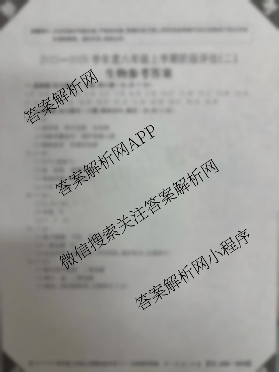 - [八年级]河北省2025-2026学年度上学期阶段评估(二)[3L-HEB]生物(JSB)答案
