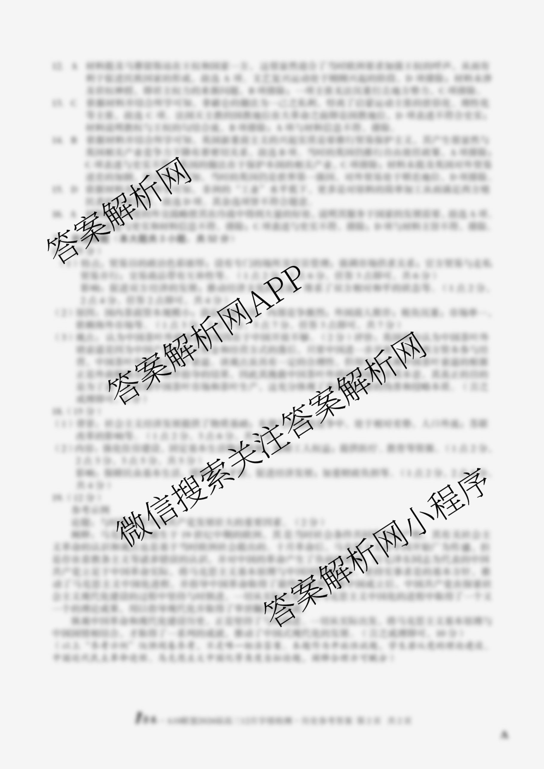 - [1号卷]·A10联盟2026届(高三)12月学情检测政治(A)答案