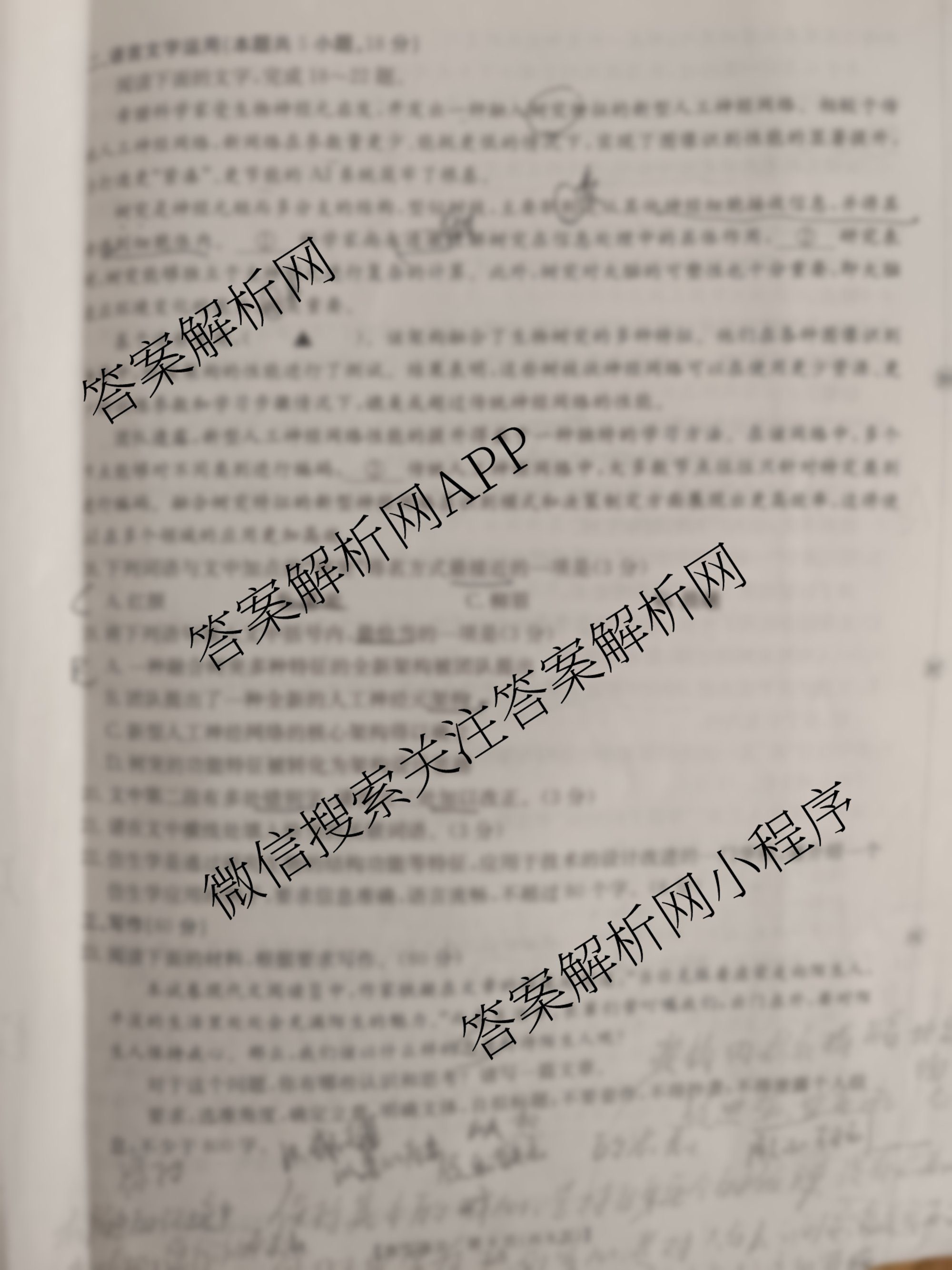 - [汉中一模]汉中市普通高中[高三]年级第一次教学质量检测考试语文答案