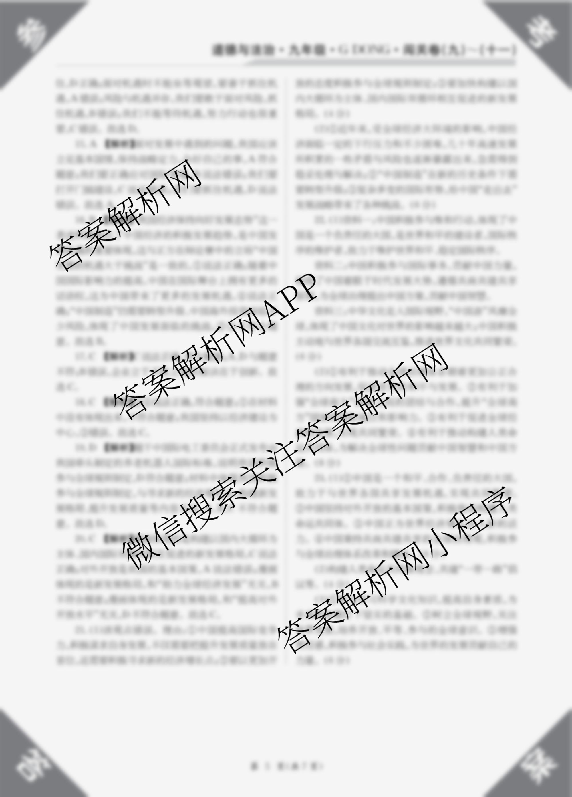 2025-2026 闯关卷 九年级 道德与法治(G DONG)(十)10答案,目前学英语报答案已经汇总了2025-2026 闯关卷 九年级 道德与法治(G DONG)(十)10答案的各科答案和试卷,获取更多闯关卷答案解析,请在关注本站。