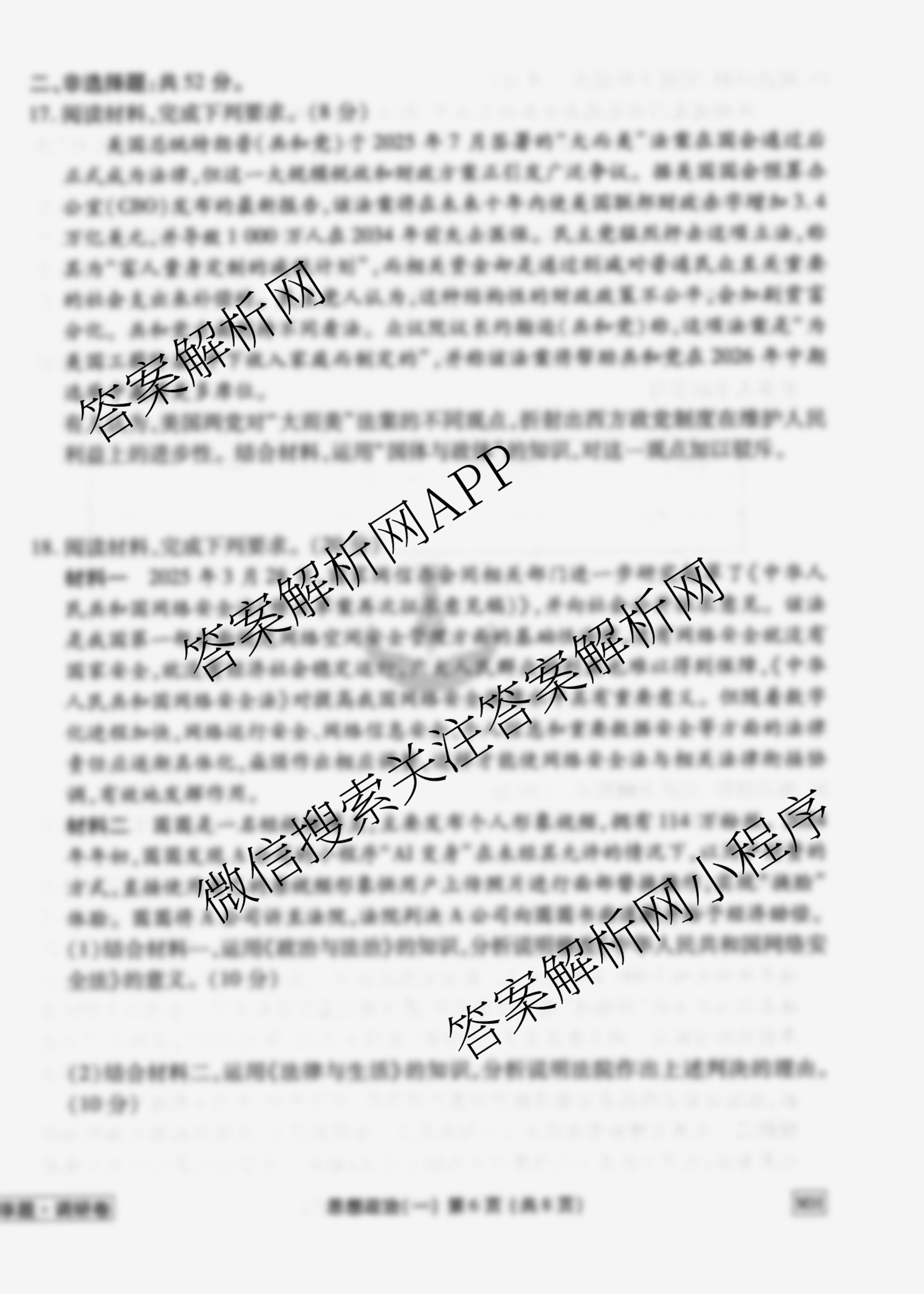 - [衡水金卷先享题]调研卷2026年普通高中学业水平选择性考试模拟试题(一)1政治(AH)答案