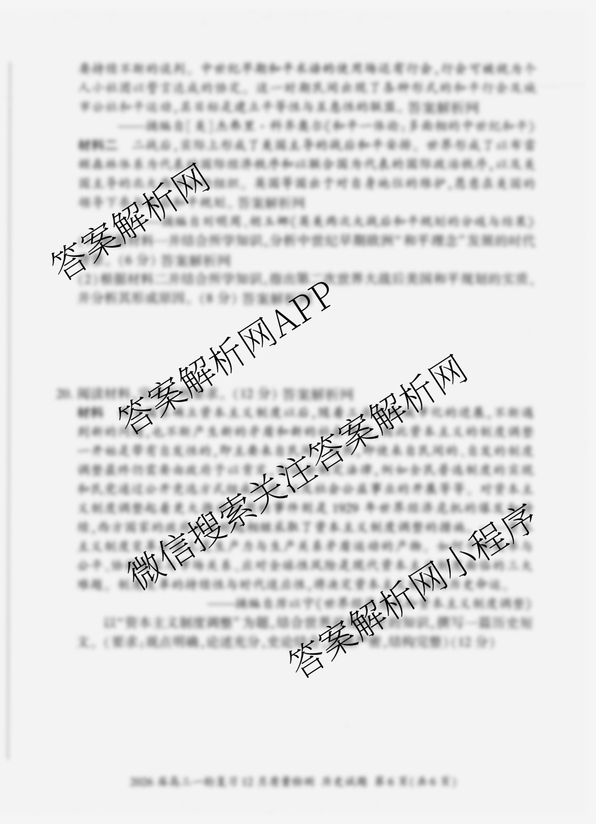 - [高三]百师联盟·2026届一轮复习12月质量检测(12.24)历史(百N)答案