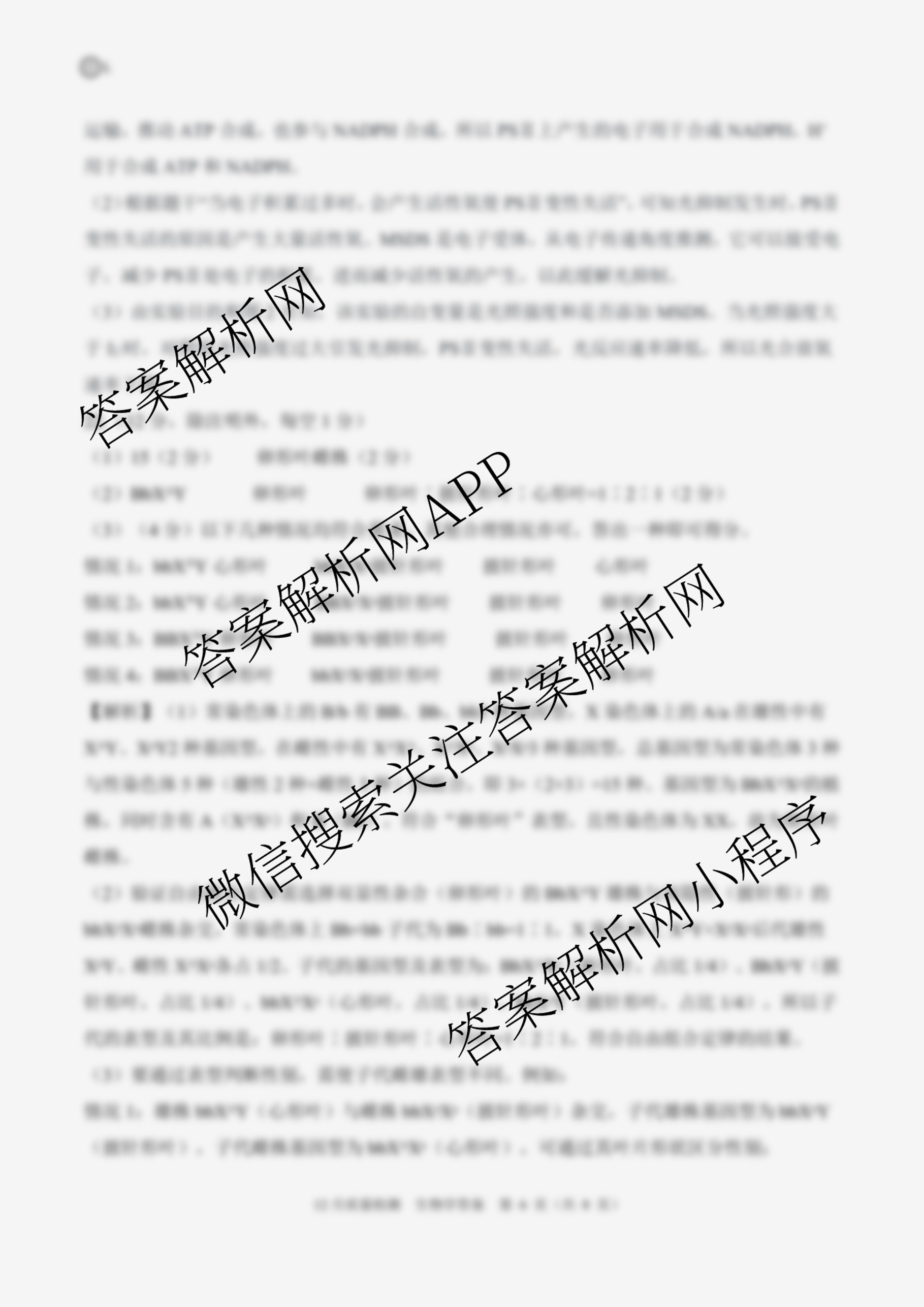 - (百师联盟)2026届[高三]一轮复习12月质量检测(12.24)生物(百G)答案