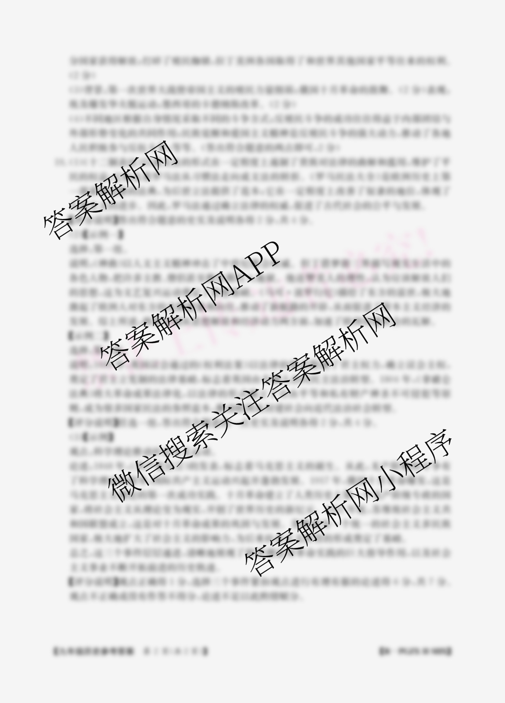 山西省2025-2026学年秋学段(九年级)期末模拟题[PGZX H SHX]历史(R)答案