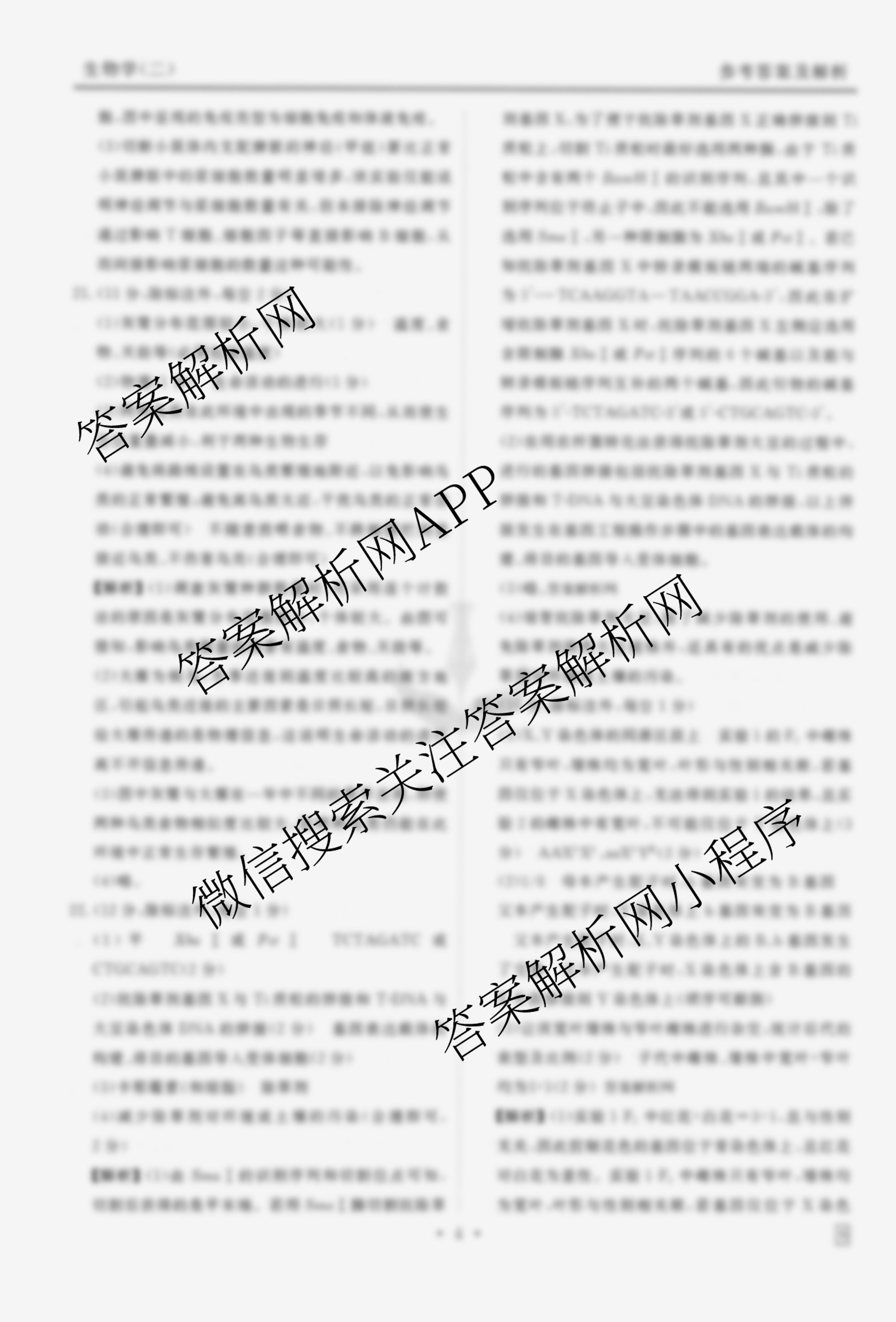 (高三)衡水金卷先享题调研卷2026年普通高中学业水平选择性考试模拟(二)2生物(S)答案