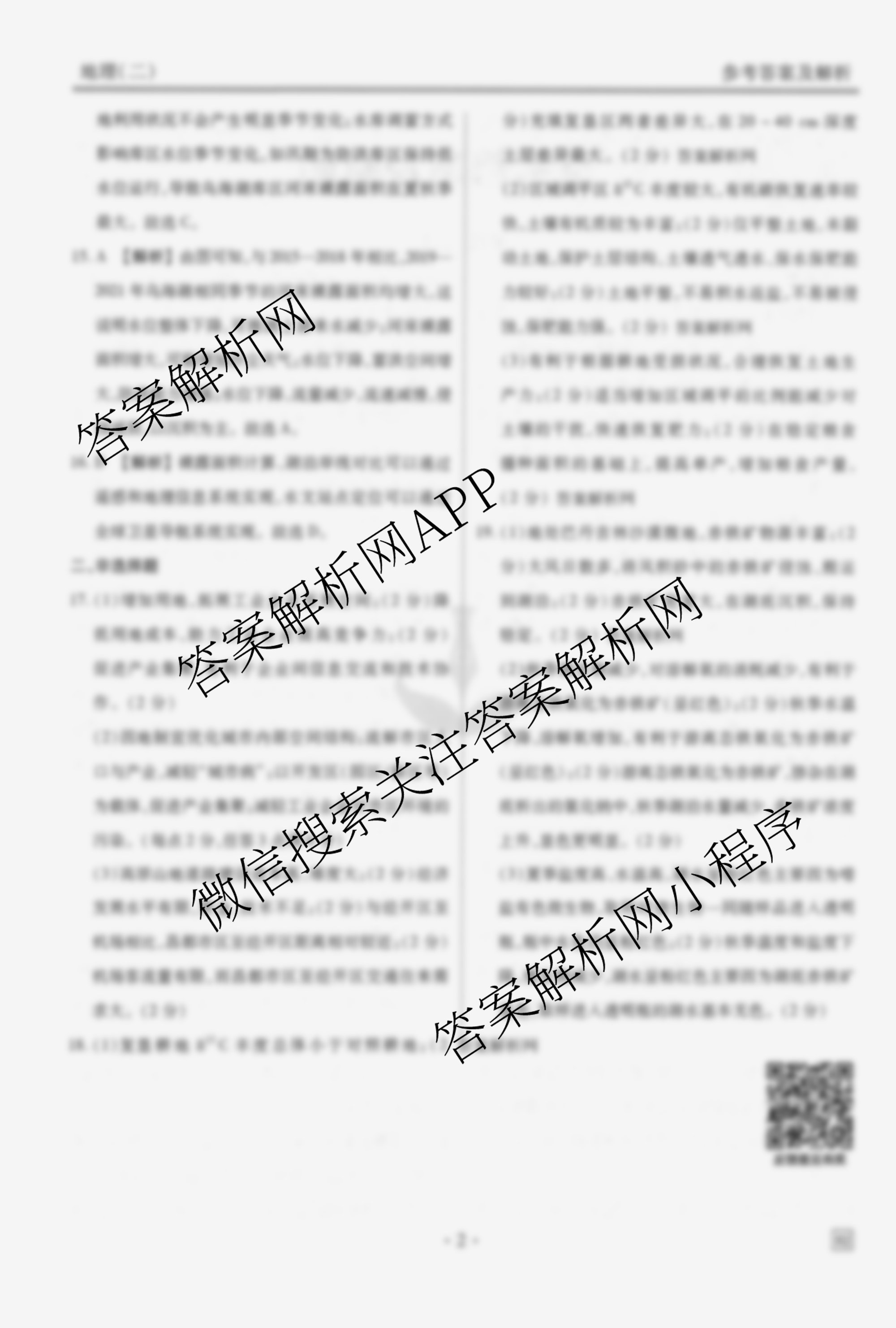 - (衡水金卷先享题)调研卷2026年普通高中学业水平等级考试模拟试题(二)2地理(山东专版)答案