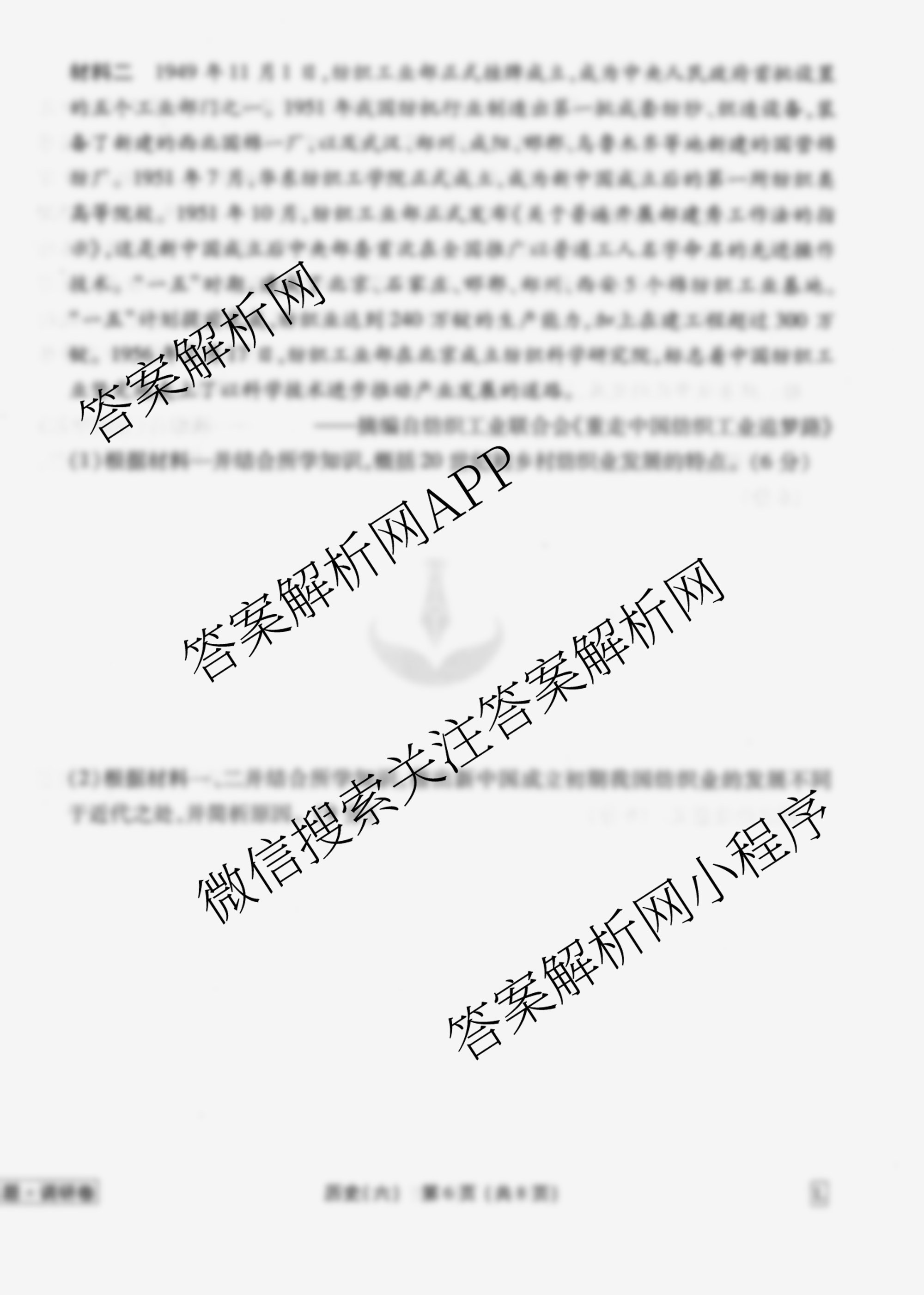 - 衡水金卷先享题调研卷2026年普通高中学业水平选择性考试模拟(六)6历史(Y)答案