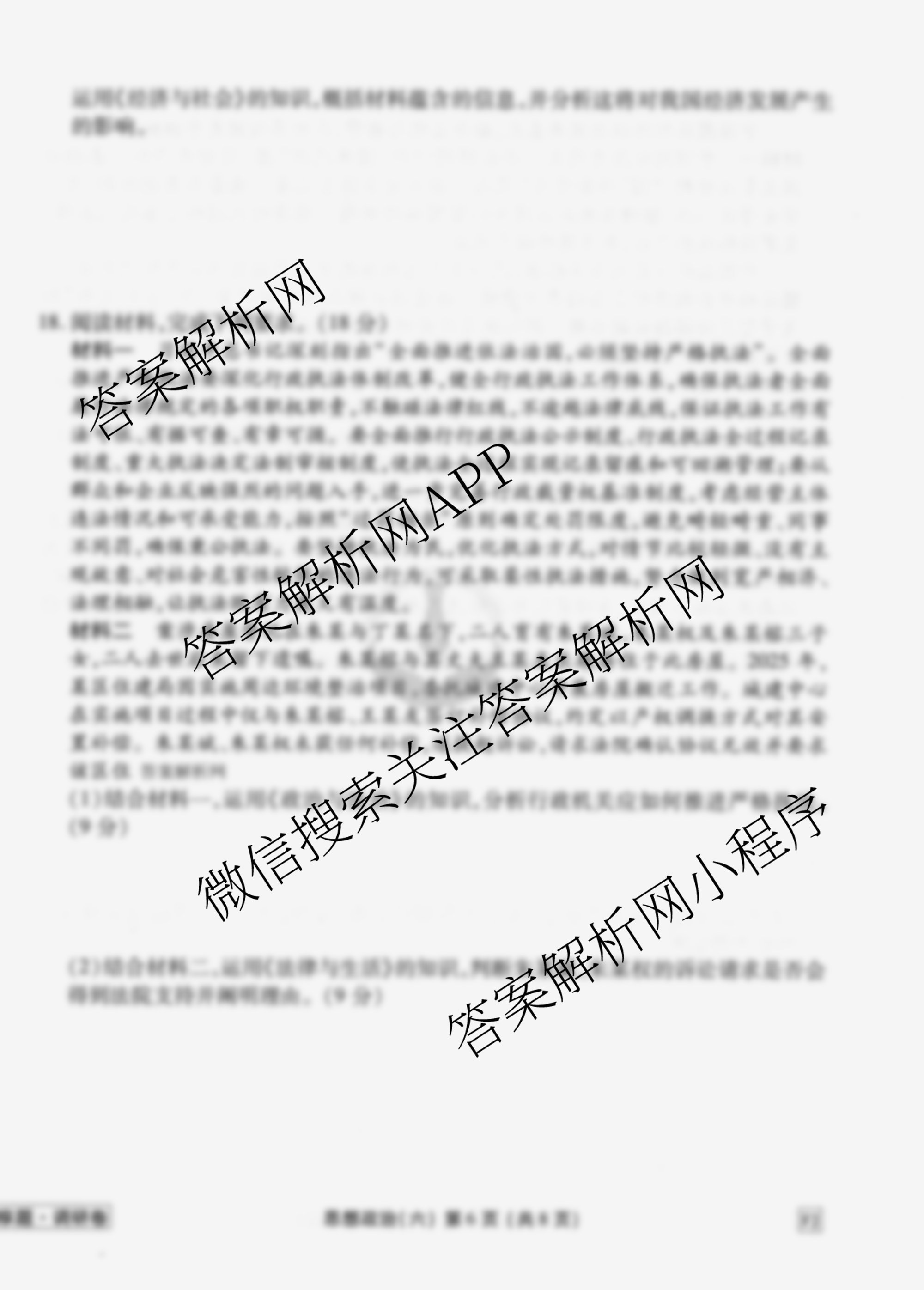 - (衡水金卷先享题)调研卷2026年普通高中学业水平选择性考试模拟试题(六)6政治(AH)答案