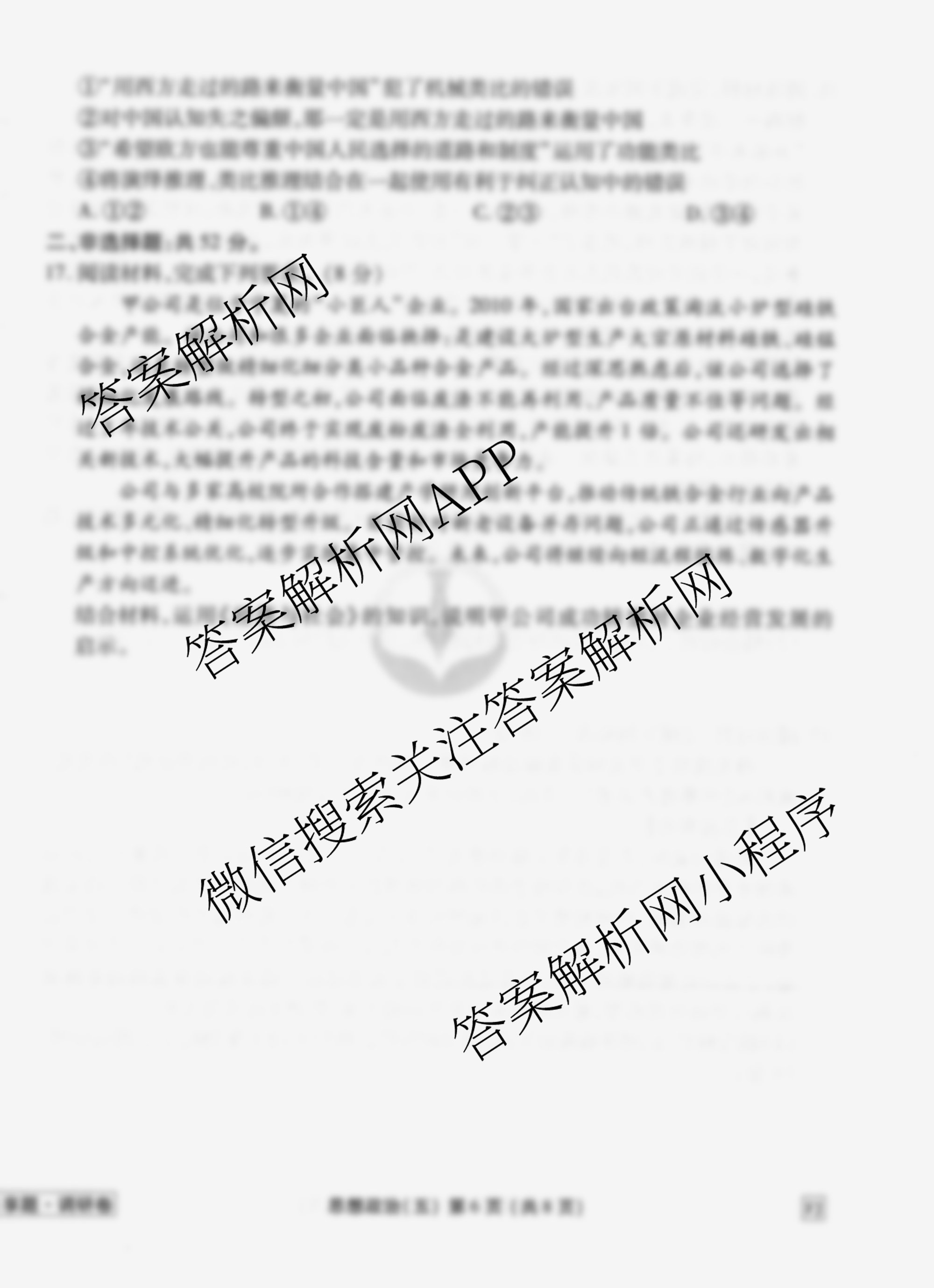 - (高三)(衡水金卷先享题)调研卷2026年普通高中学业水平选择性考试模拟试题(五)5政治(AH)答案