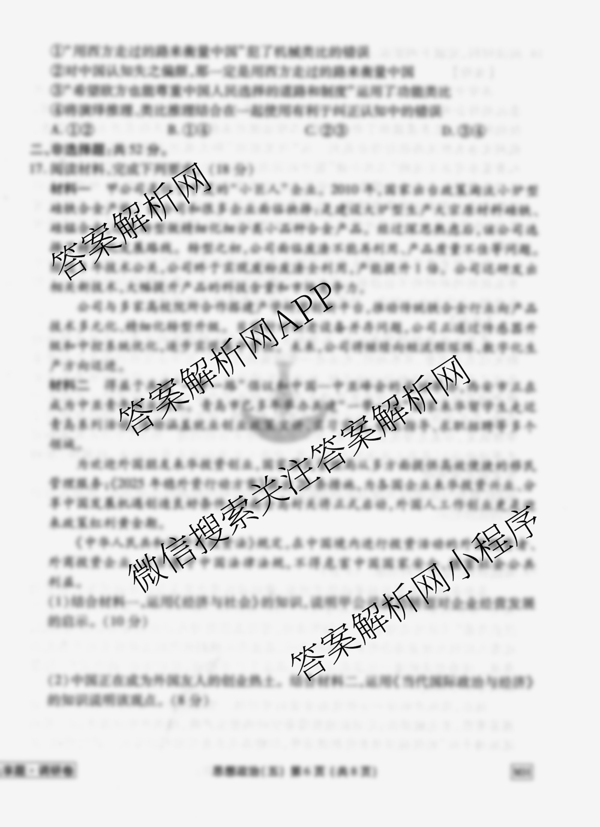 - (高三)(衡水金卷先享题)调研卷2026年普通高中学业水平选择性考试模拟试题(五)5政治(AH)试题