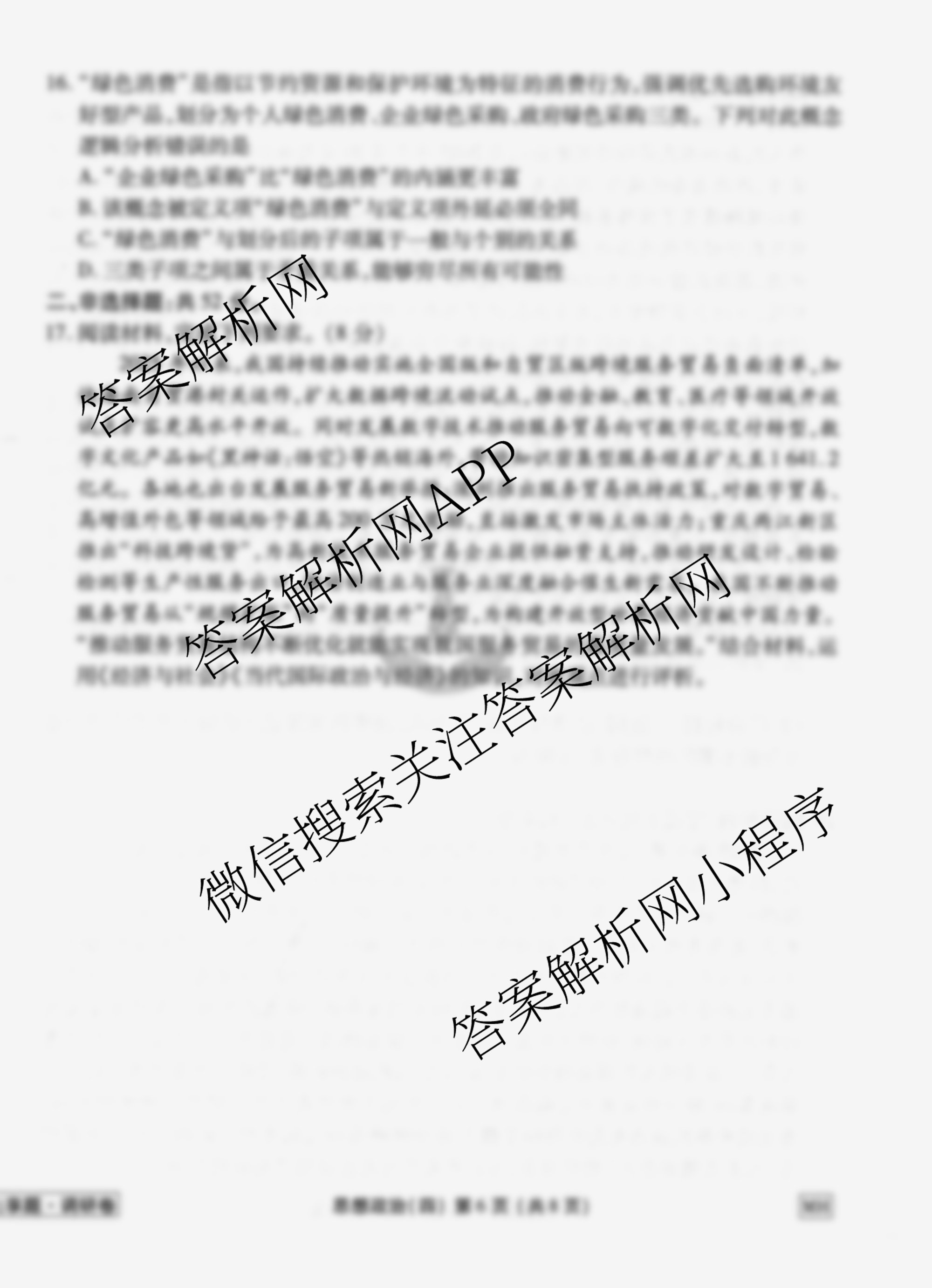 - [衡水金卷先享题]调研卷2026年普通高中学业水平选择性考试模拟试题(四)4政治(GD)答案