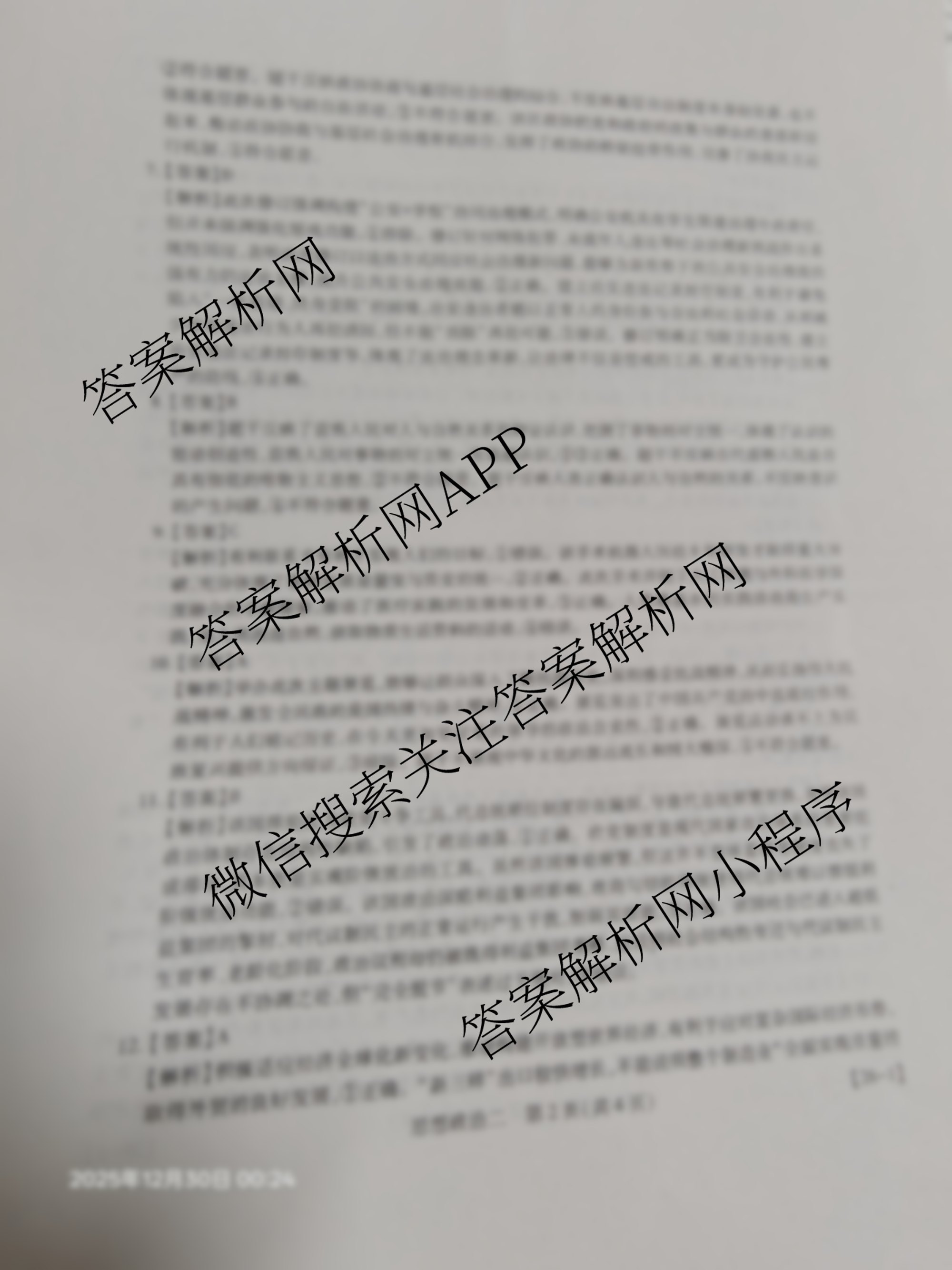 - [高考模拟冲刺预测训练]2026届[智慧上进]名校学术联盟高考模拟信息卷&冲刺卷&预测卷(二)2政治(无字母26-1)答案