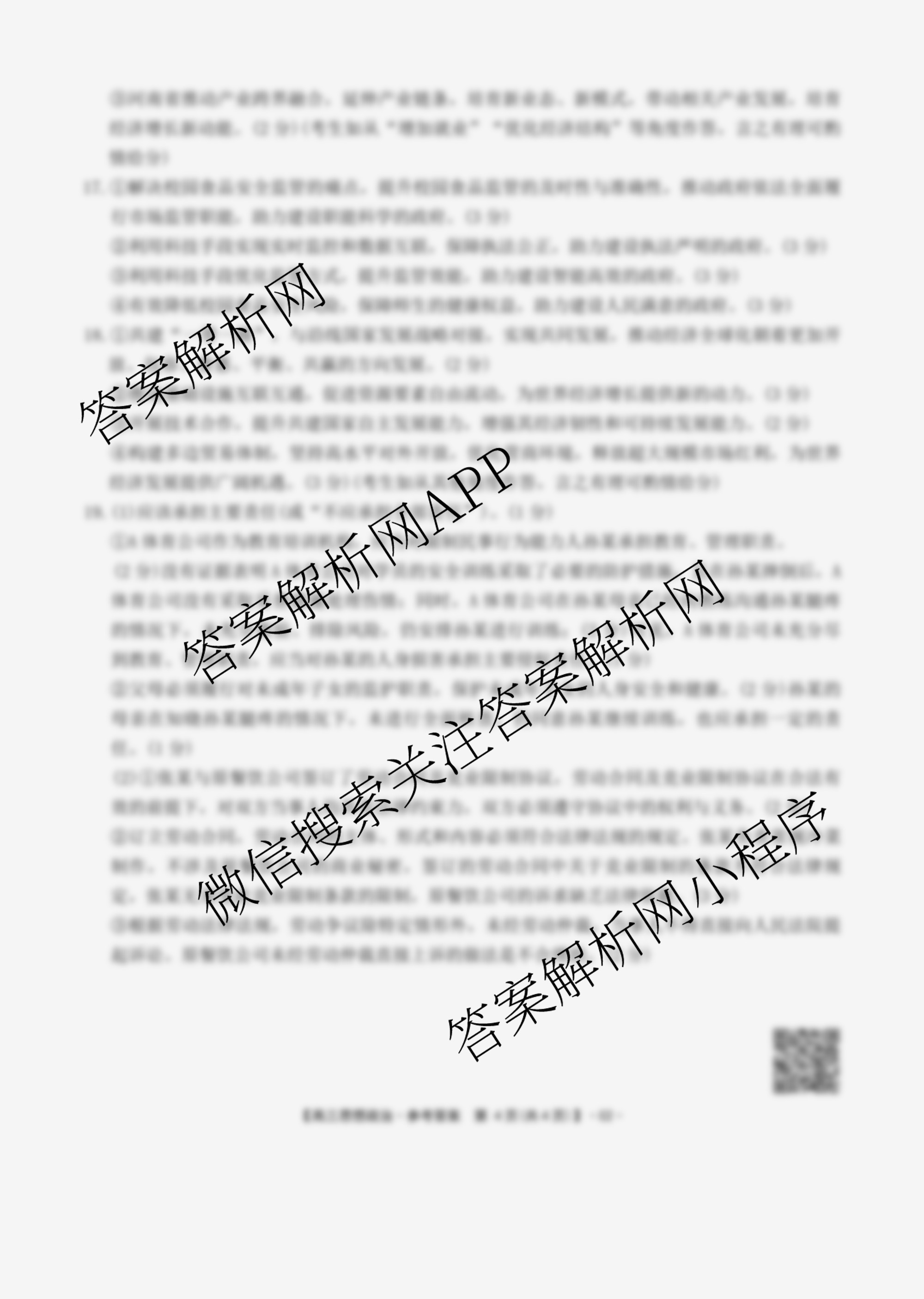 - 2025~2026年度上学期河南省[高三]年级第三次联考政治(C1)答案