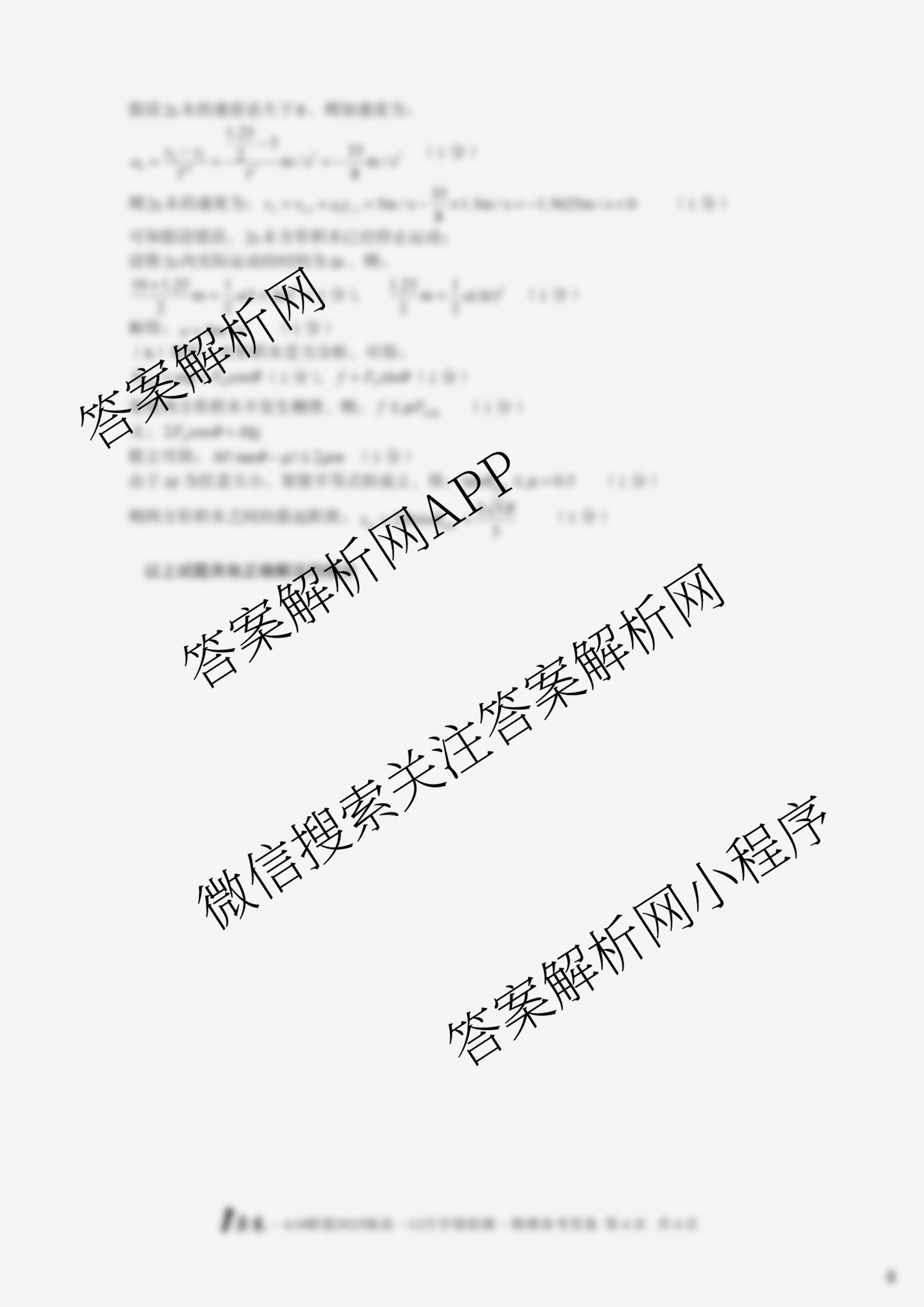 - [1号卷]A10联盟2025级(高一)12月学情检测物理(A)答案