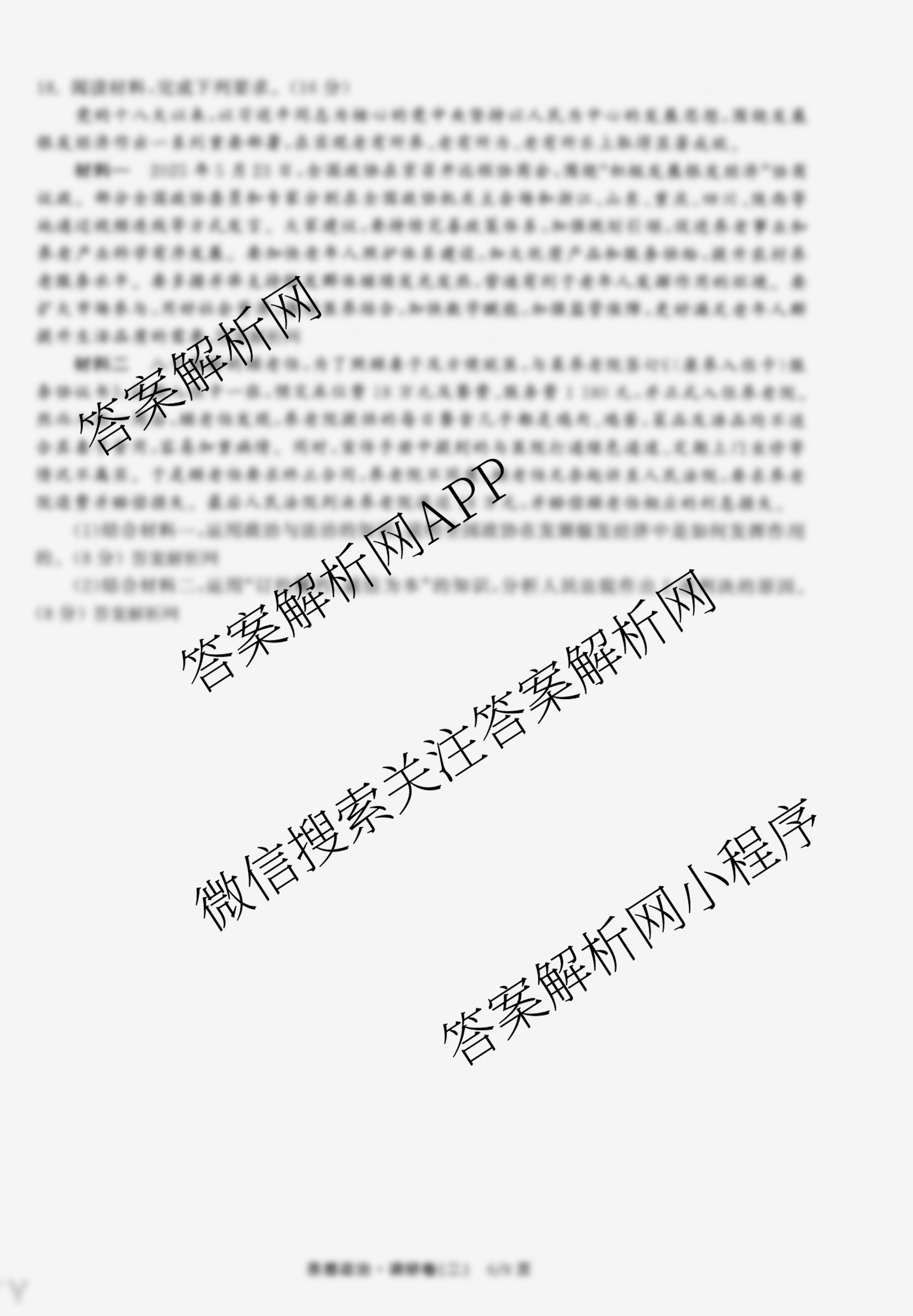 - 天舟高考(衡中同卷)·2026年普通高中学业水平选择性考试模拟调研卷(二)2政治(WY)试题