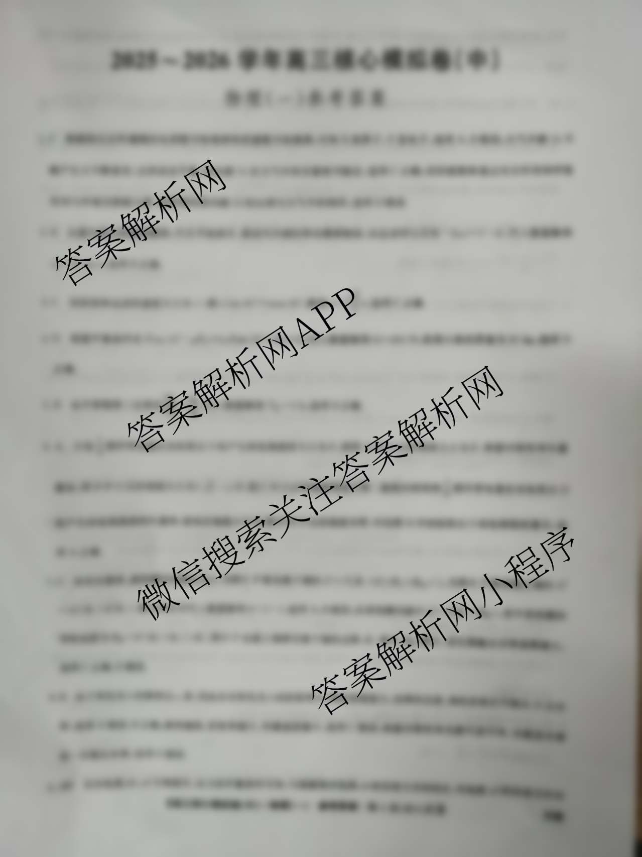 - (高三)(九师联盟)·2025~2026学年核心模拟卷(中)(一)1地理(B)试题