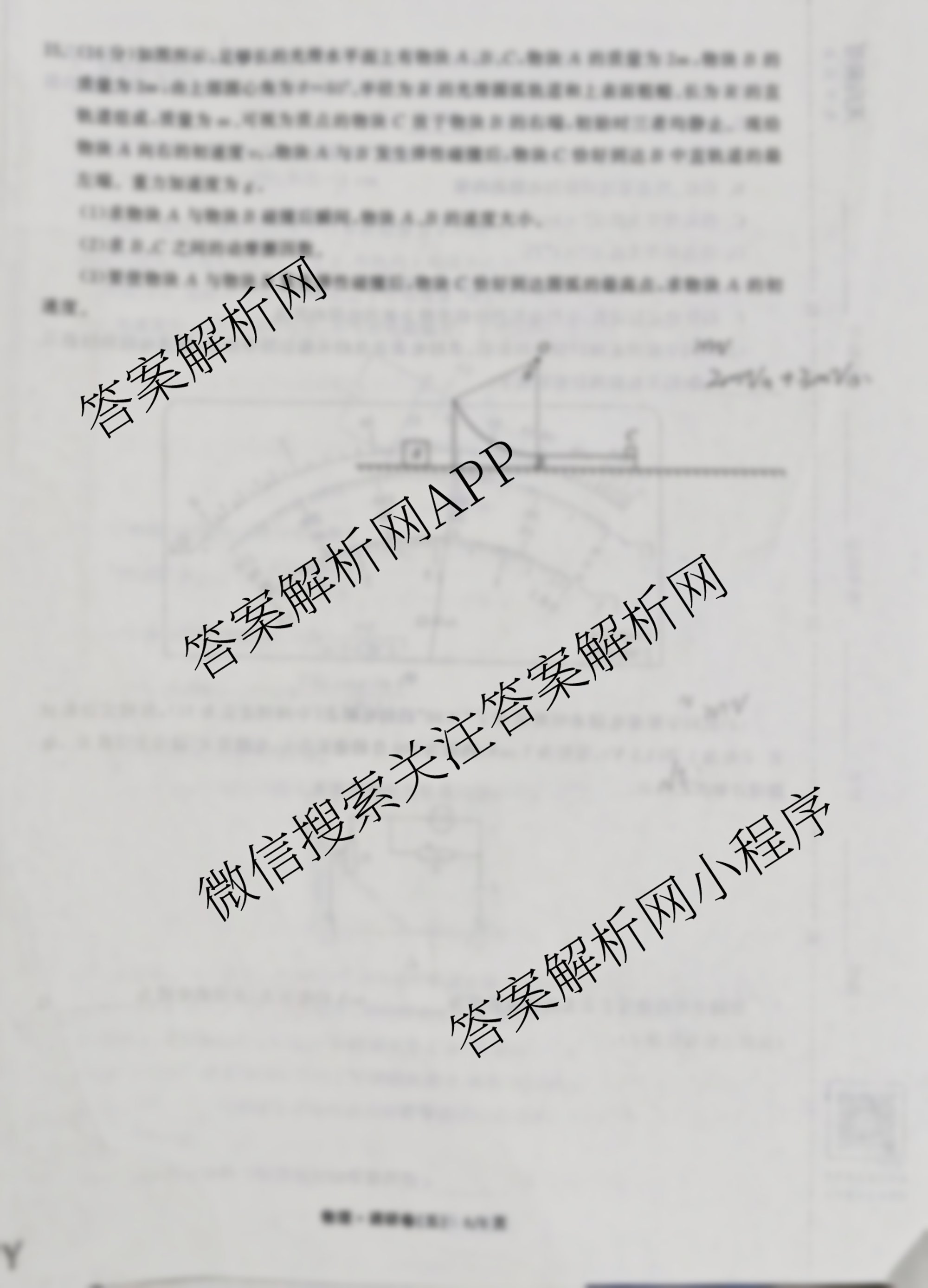 - [高三]天舟高考衡中同卷2026年普通高中学业水平选择性考试模拟调研卷(五)5物理(安徽版)答案
