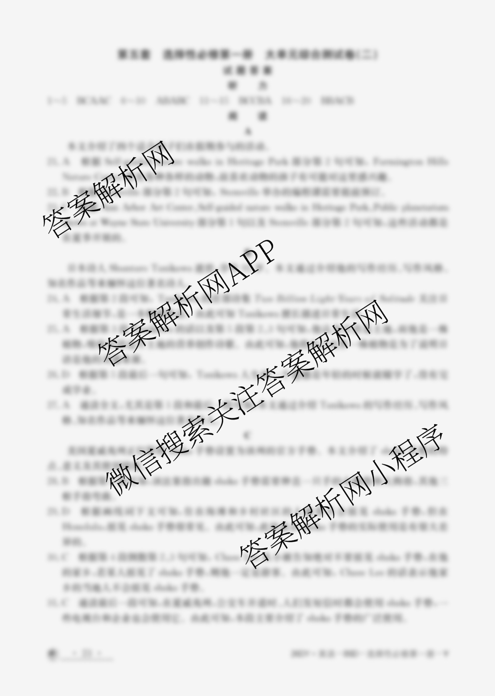 2026单元测试示范卷英语[26DY英语BSD-选择性必修第一册-Y](五)5答案