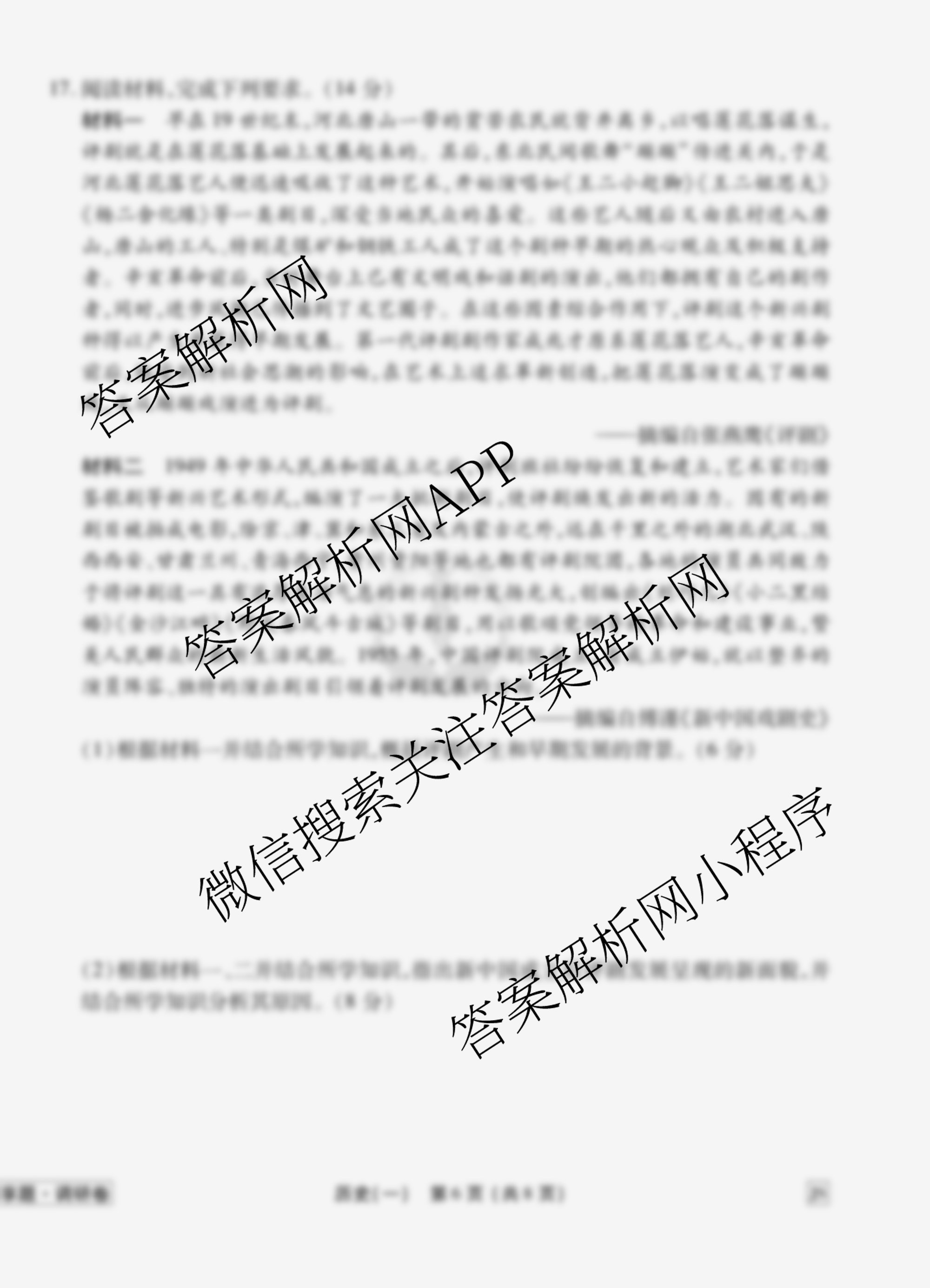 - (衡水金卷先享题)调研卷2026年普通高中学业水平选择性考试模拟试题(一)1历史(AH)答案