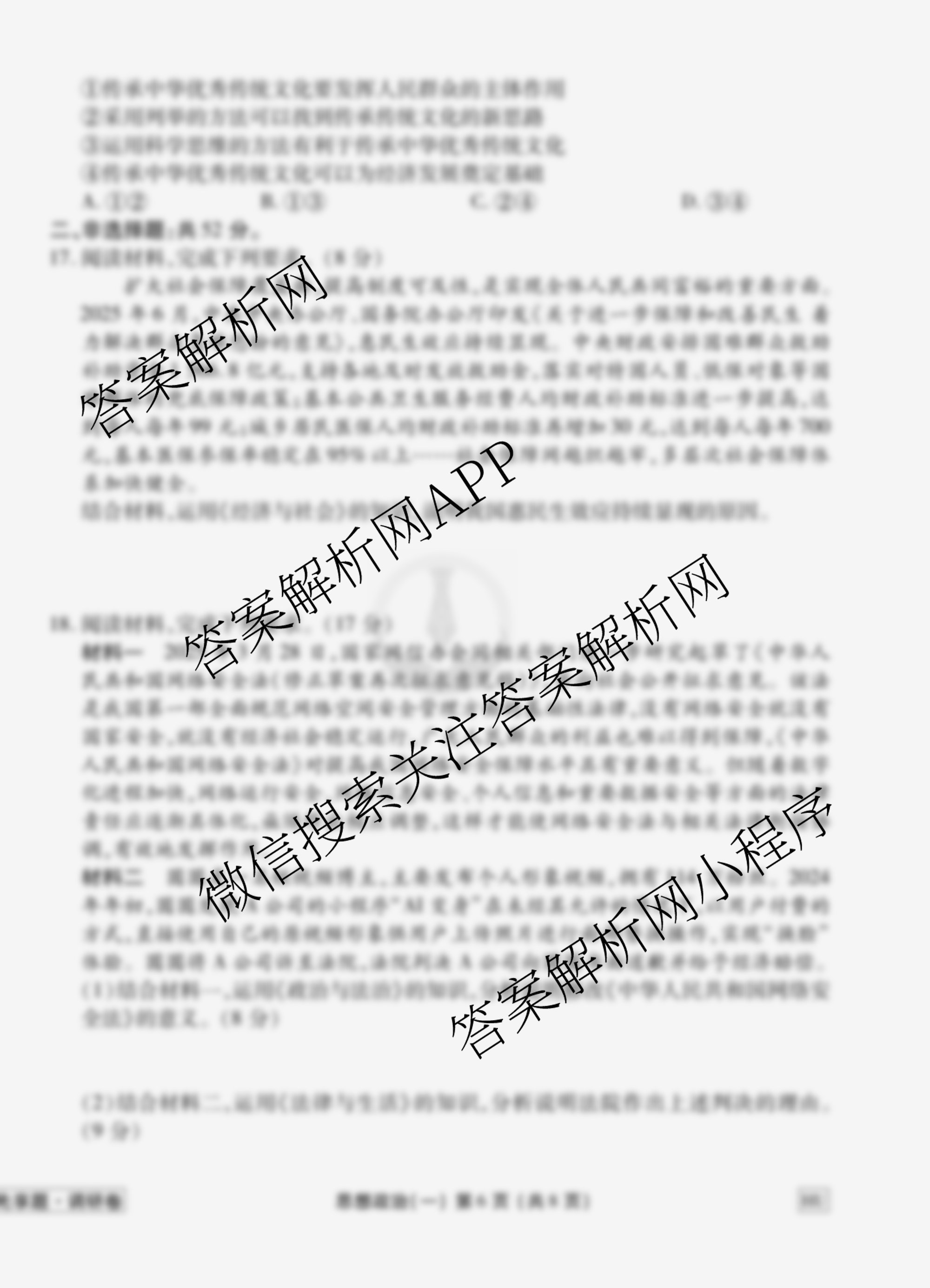 - [衡水金卷先享题]调研卷2026年普通高中学业水平选择性考试模拟试题(一)1政治(AH)答案