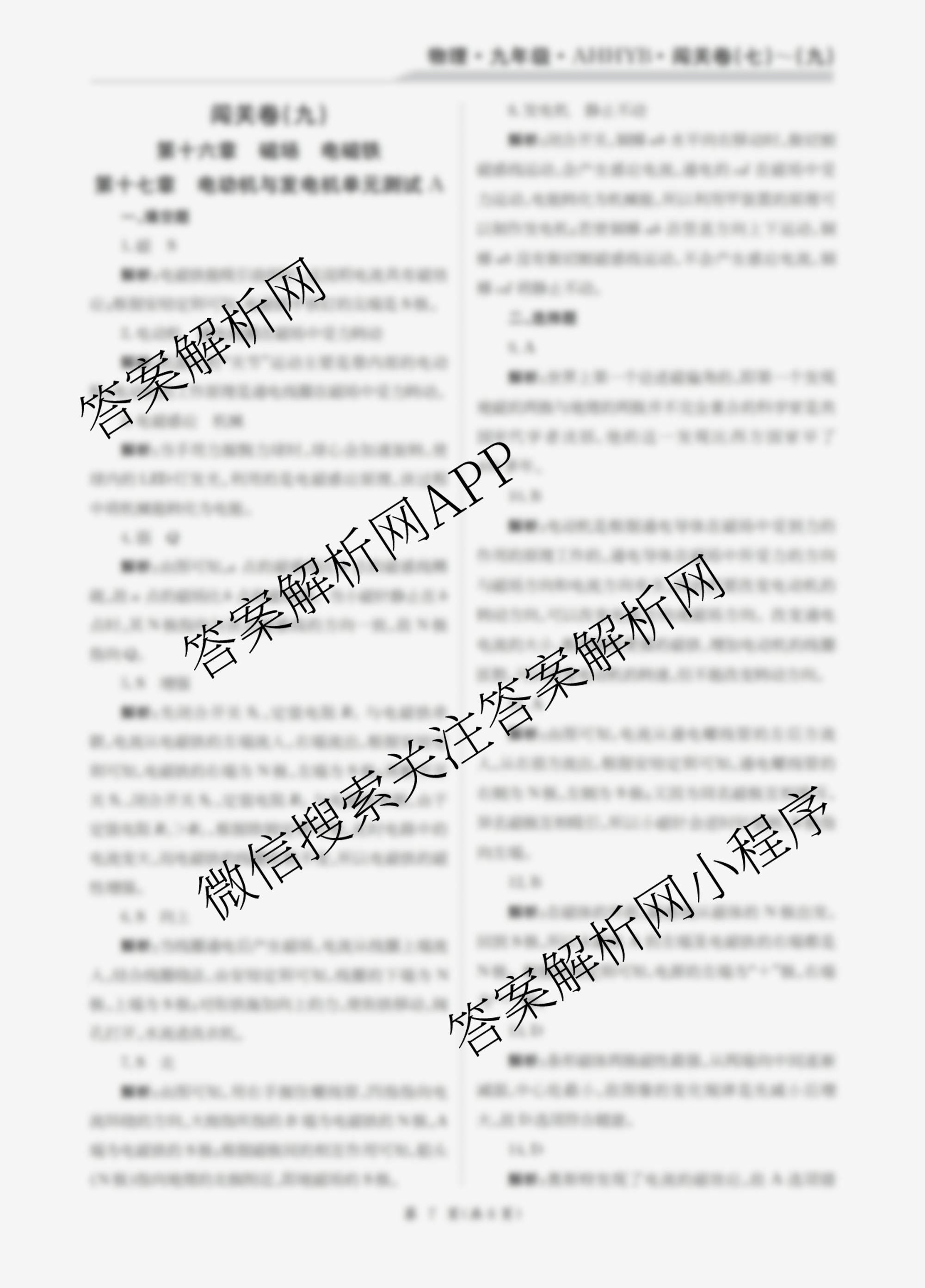 2025-2026 闯关卷 九年级 物理(AHHYB)(九)9答案,目前学英语报答案已经汇总了2025-2026 闯关卷 九年级 物理(AHHYB)(九)9答案的各科答案和试卷,获取更多闯关卷答案解析,请在关注本站。