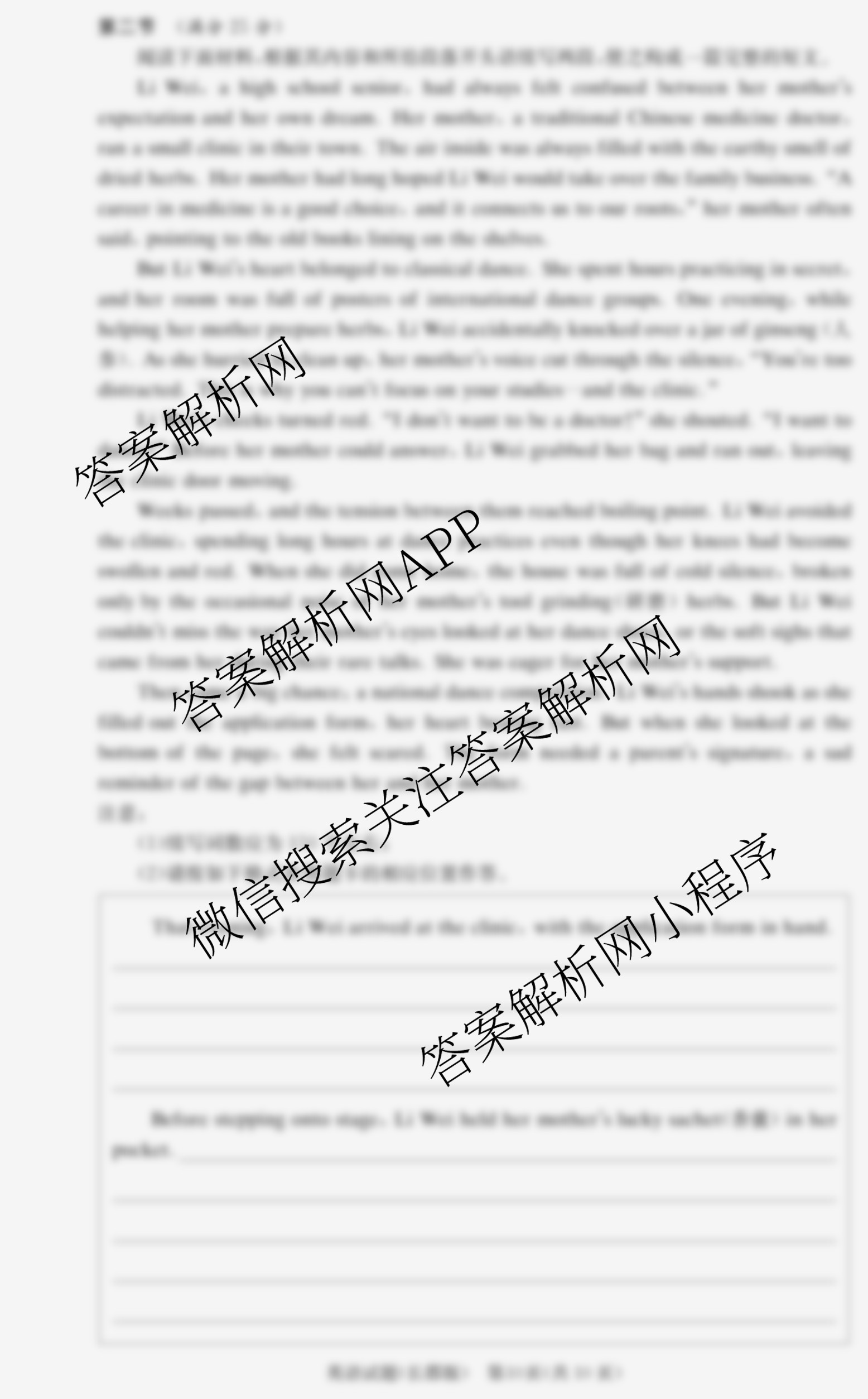 - (高三)[炎德英才大联考]长郡中学2026届月考试卷(五)英语答案