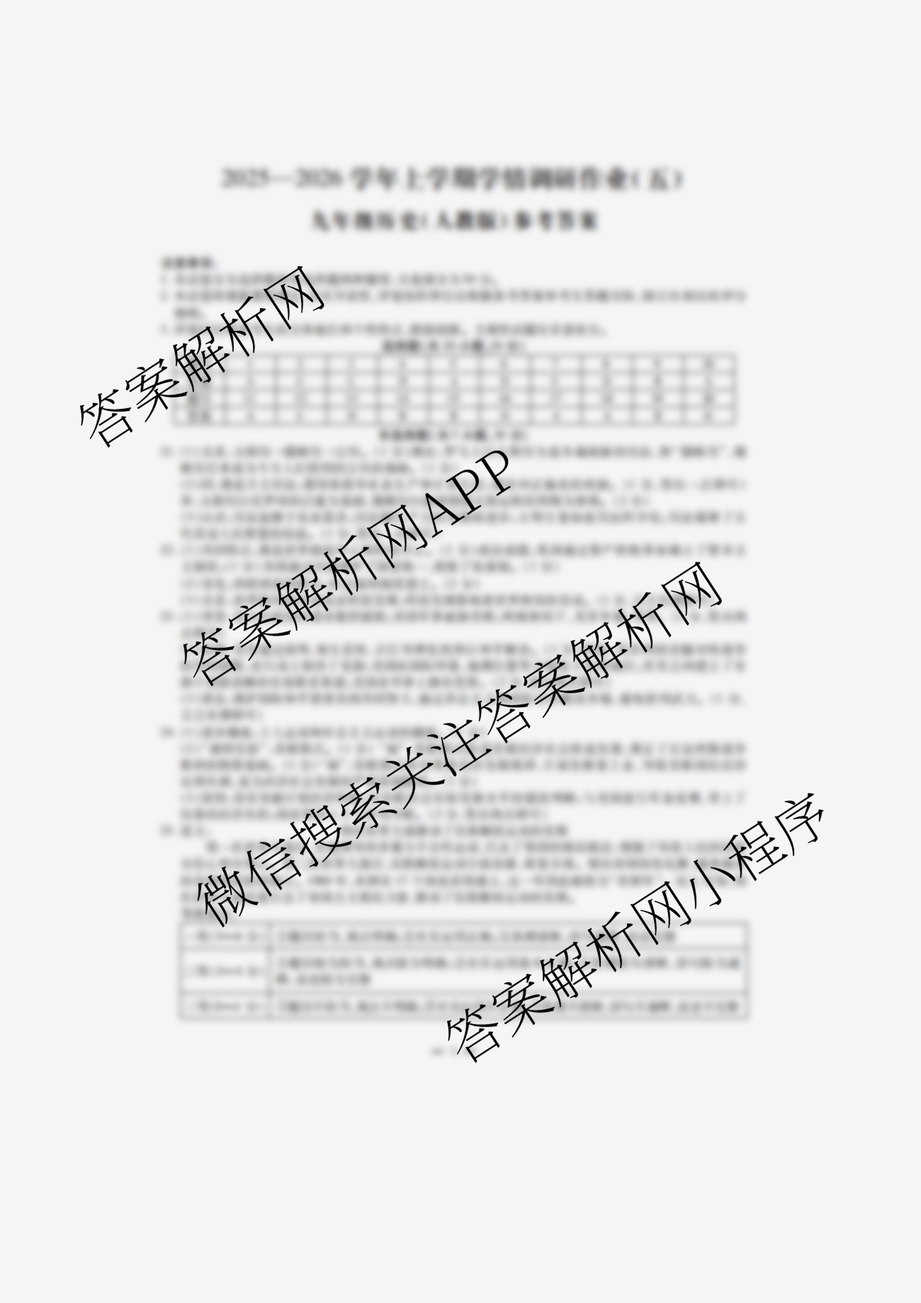 - 2025-2026(九年级)河南省周口市学年上学期学情调研作业(五)历史(人教版)答案
