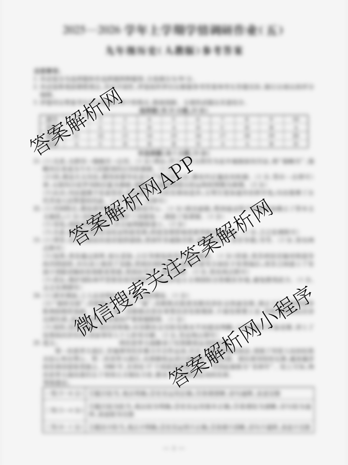 - 2025-2026(九年级)河南省周口市学年上学期学情调研作业(五)历史(人教版)答案