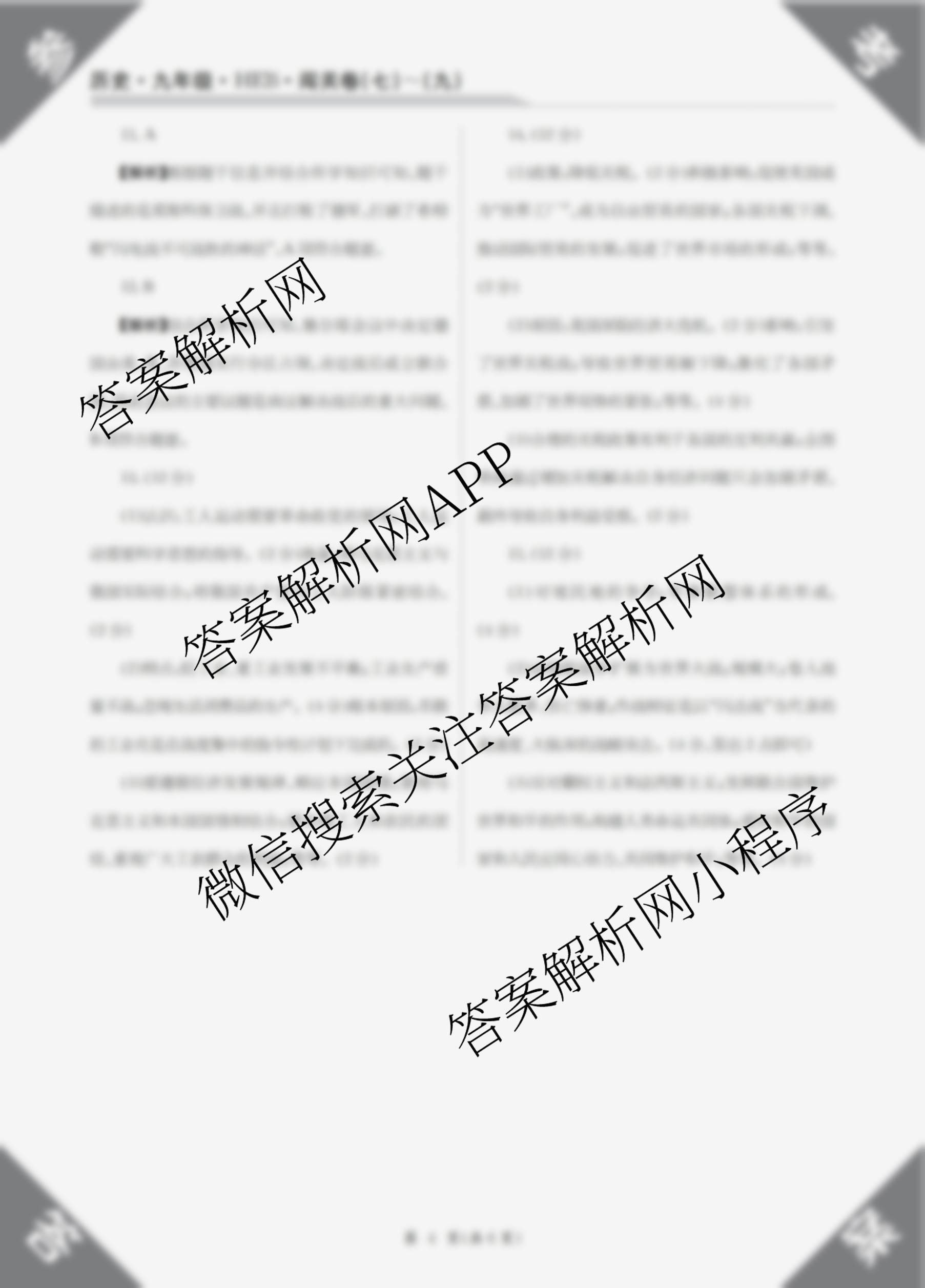 2025-2026 闯关卷 九年级 历史(HEB)(八)8答案