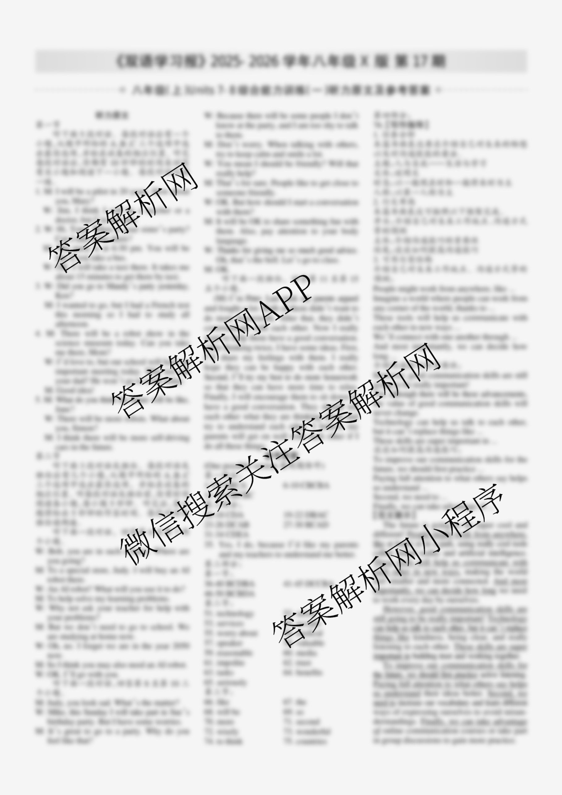 2025-2026 双语学习报 八年级 X版第17期答案,目前学英语报答案已经汇总了2025-2026 双语学习报 八年级 X版第17期答案的各科答案和试卷,获取更多学生双语报答案解析,请在关注本站。