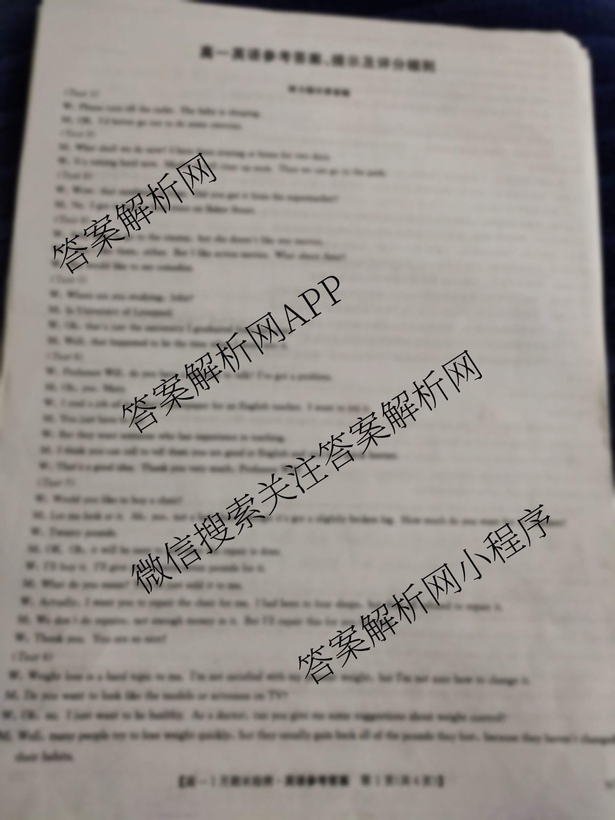 - [高一][九师联盟]2025-2026学年期末检测(1.11)英语(NY)答案