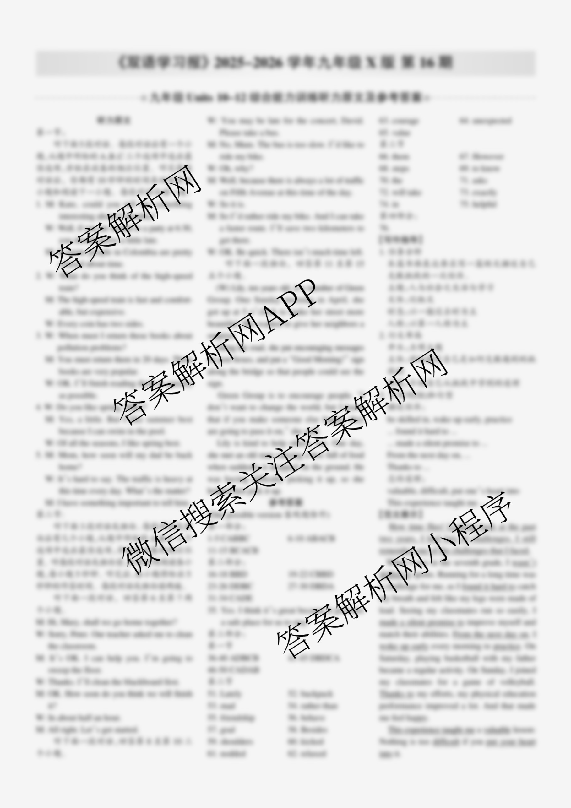 2025-2026 双语学习报 九年级 X版第16期答案,目前学英语报答案已经汇总了2025-2026 双语学习报 九年级 X版第16期答案的各科答案和试卷,获取更多学生双语报答案解析,请在关注本站。