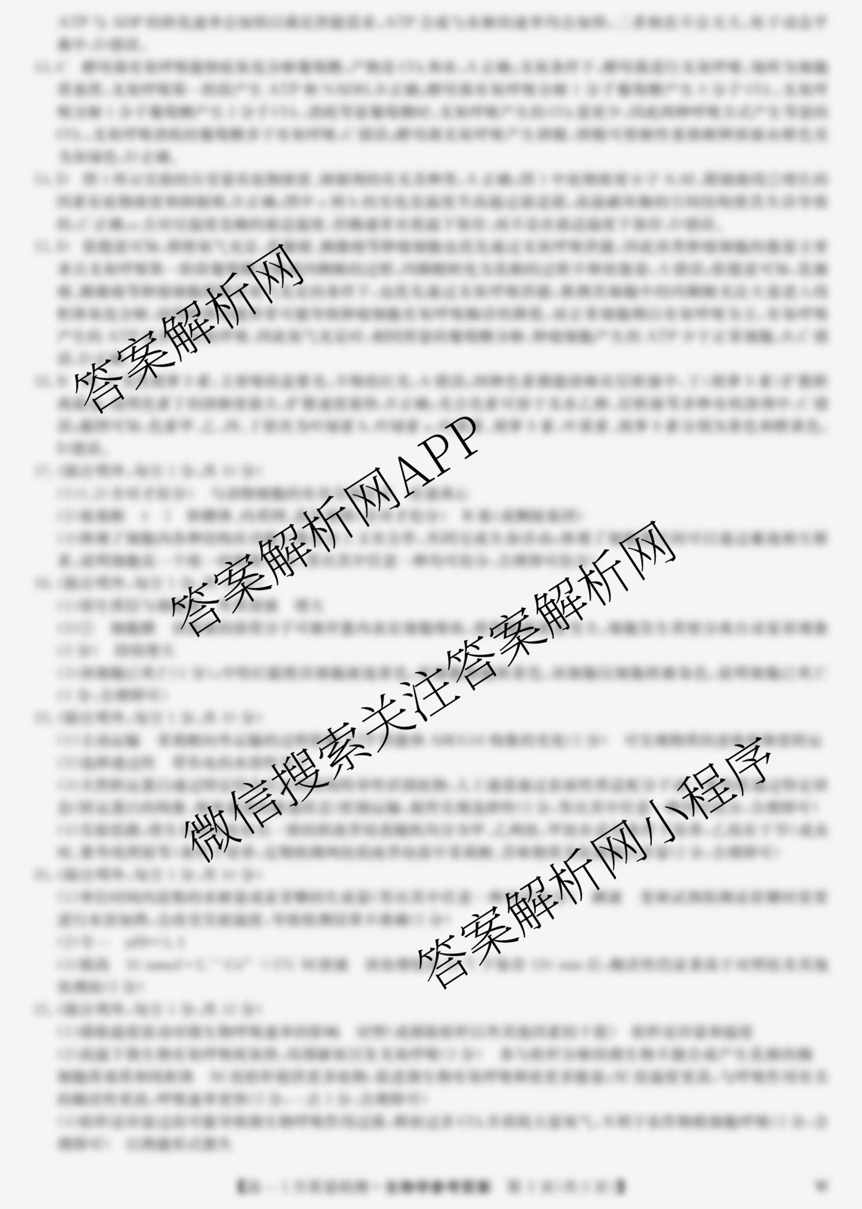 - [高一]九师联盟2025~2026学年1月质量检测(1.12)生物(W)答案