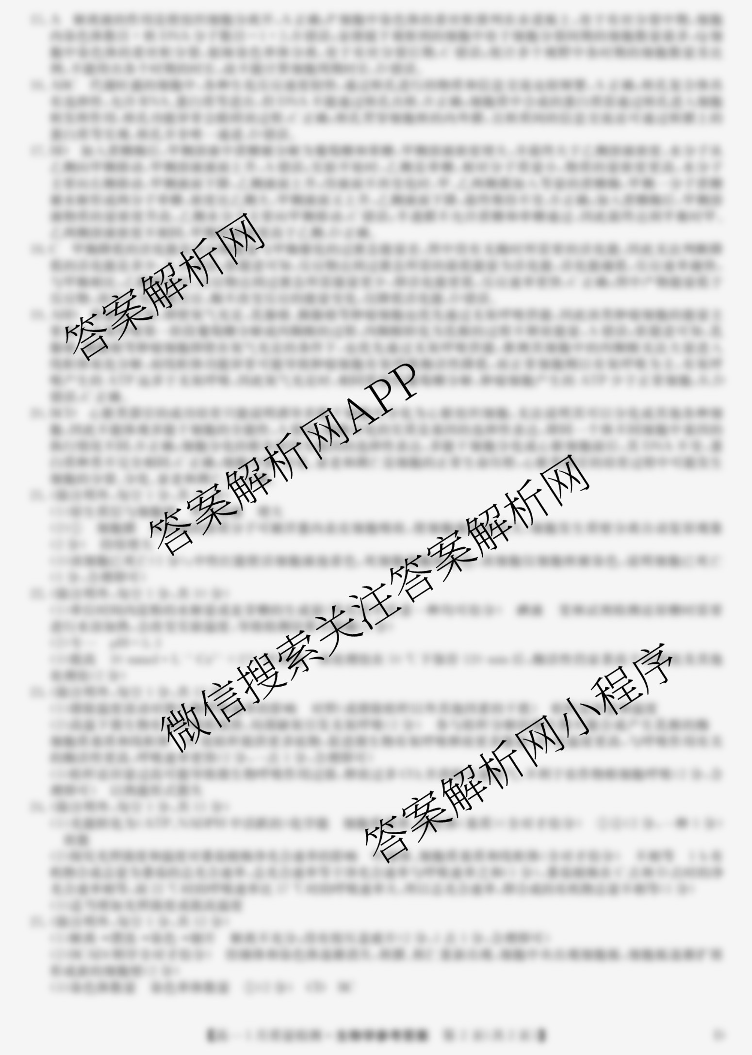 - [高一]九师联盟2025~2026学年1月质量检测(1.12)生物(W)答案