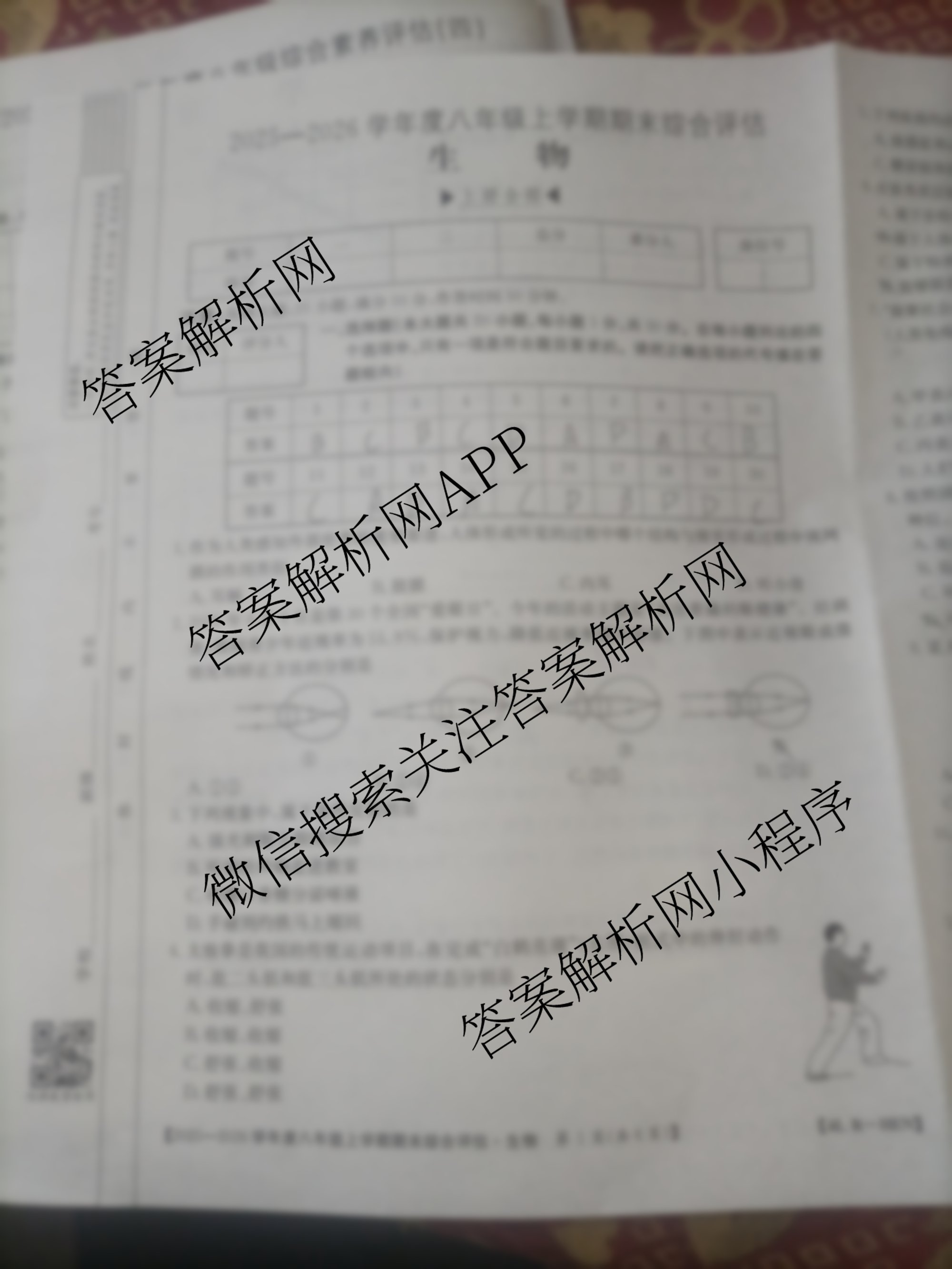- 河南省2025~2026学年度[八年级]上学期期末综合评估[4L-HEN]生物(R)试题