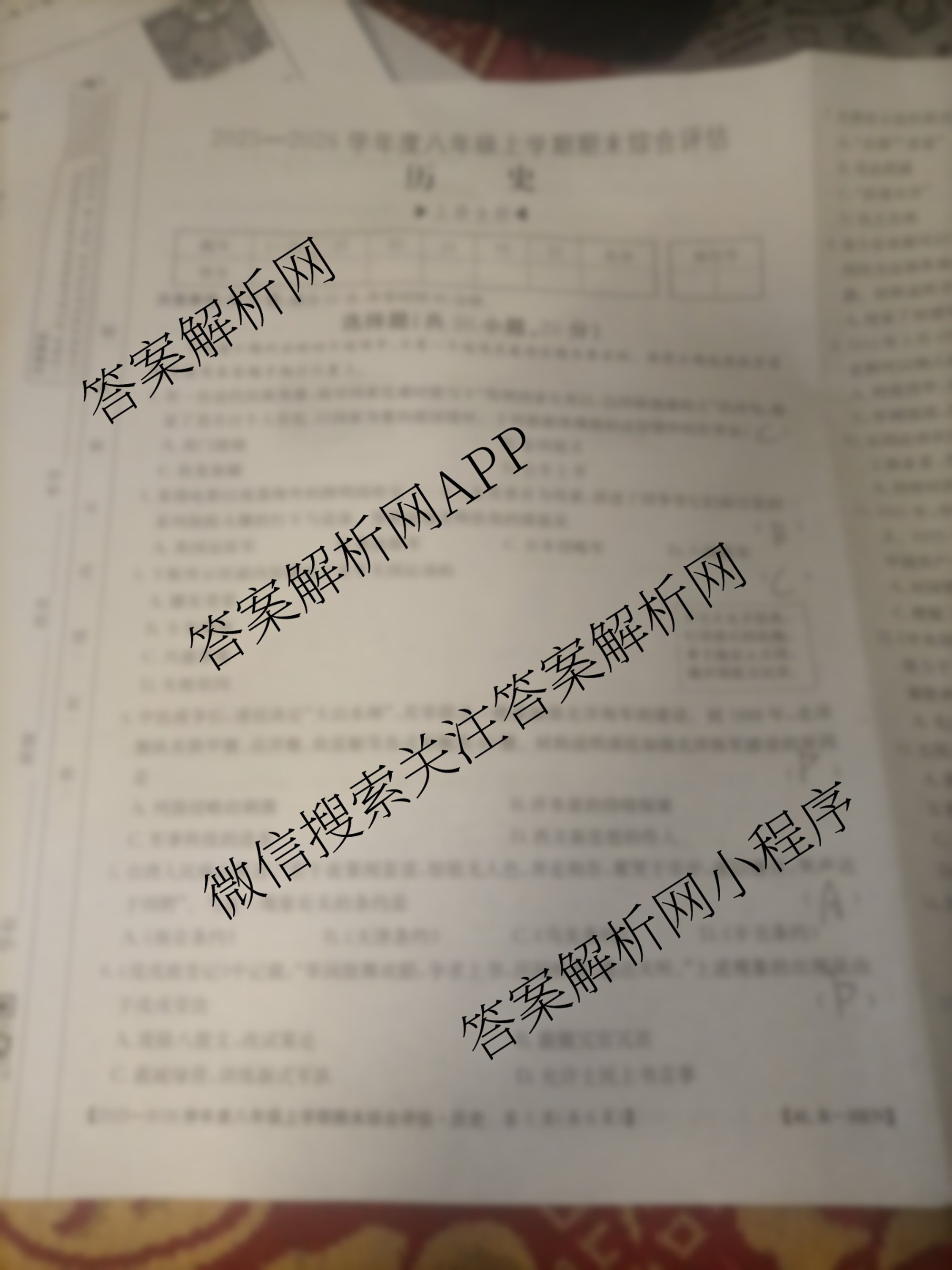 - 八年级河南省2025~2026学年度上学期期末综合评估[4L-HEN]历史(R)答案