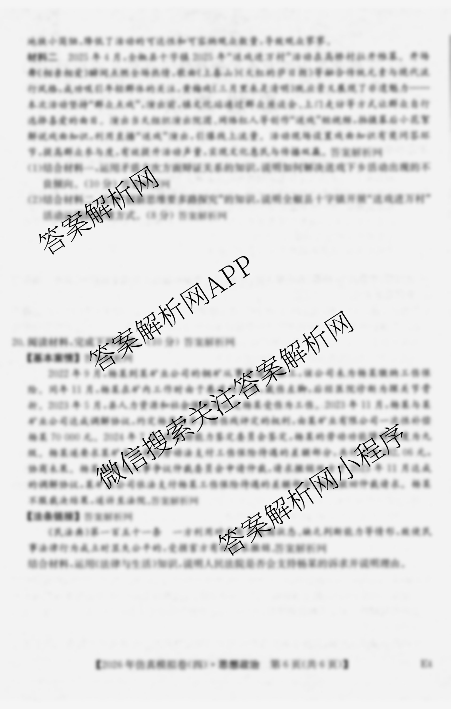 - [高三]2026年普通高中学业水平选择性考试仿真模拟卷(四)4政治(E4)答案