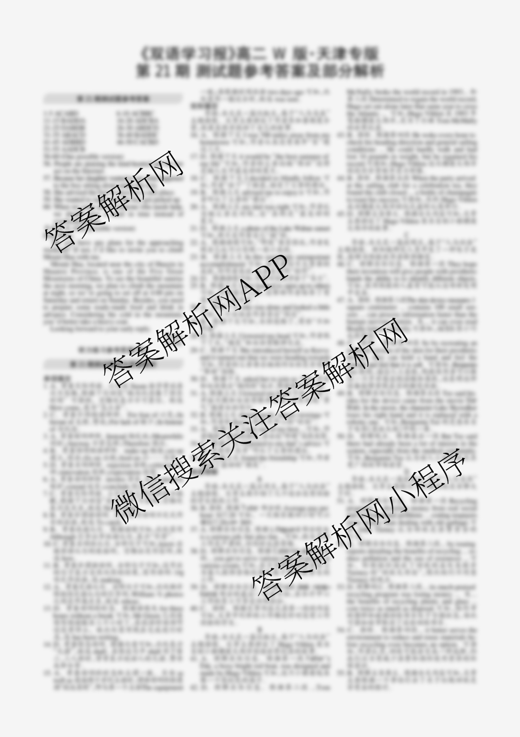 双语学习报 2025-2026学年上学期 高二 W版天津专版 第21期答案