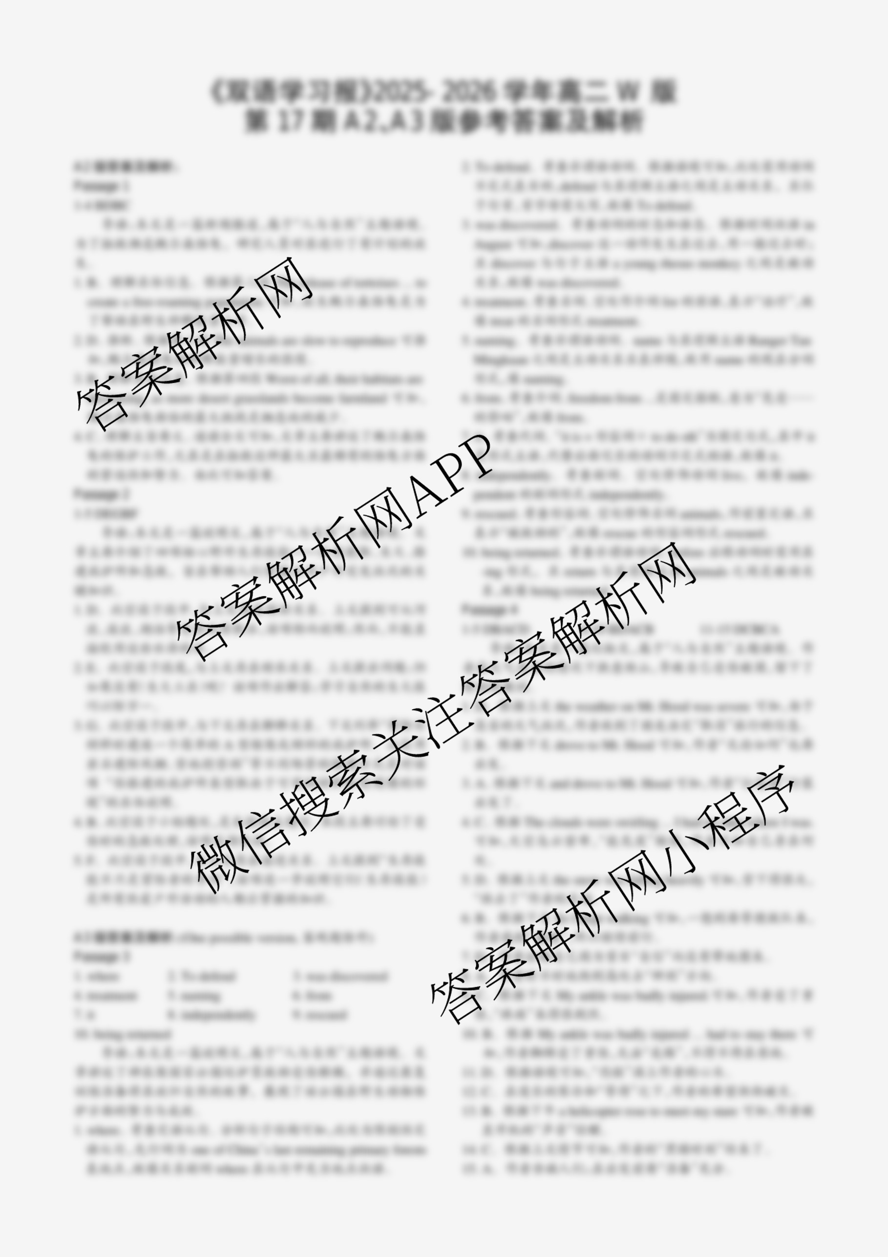 2025-2026 双语学习报 高二 W版天津专版第17期答案